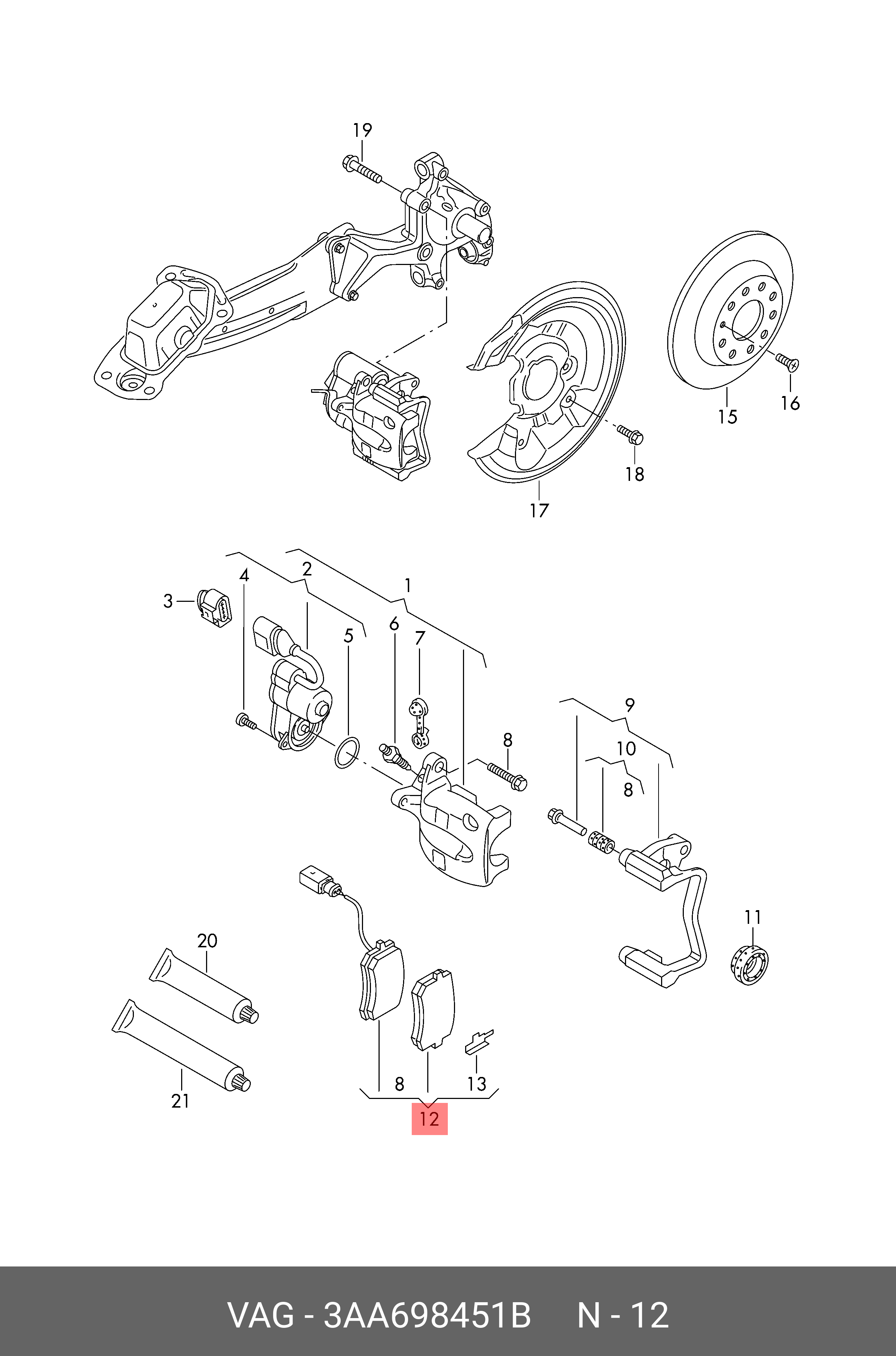 3AA 698 451 B VAG комплект тормозных колодок для дисковы 3AA698451B