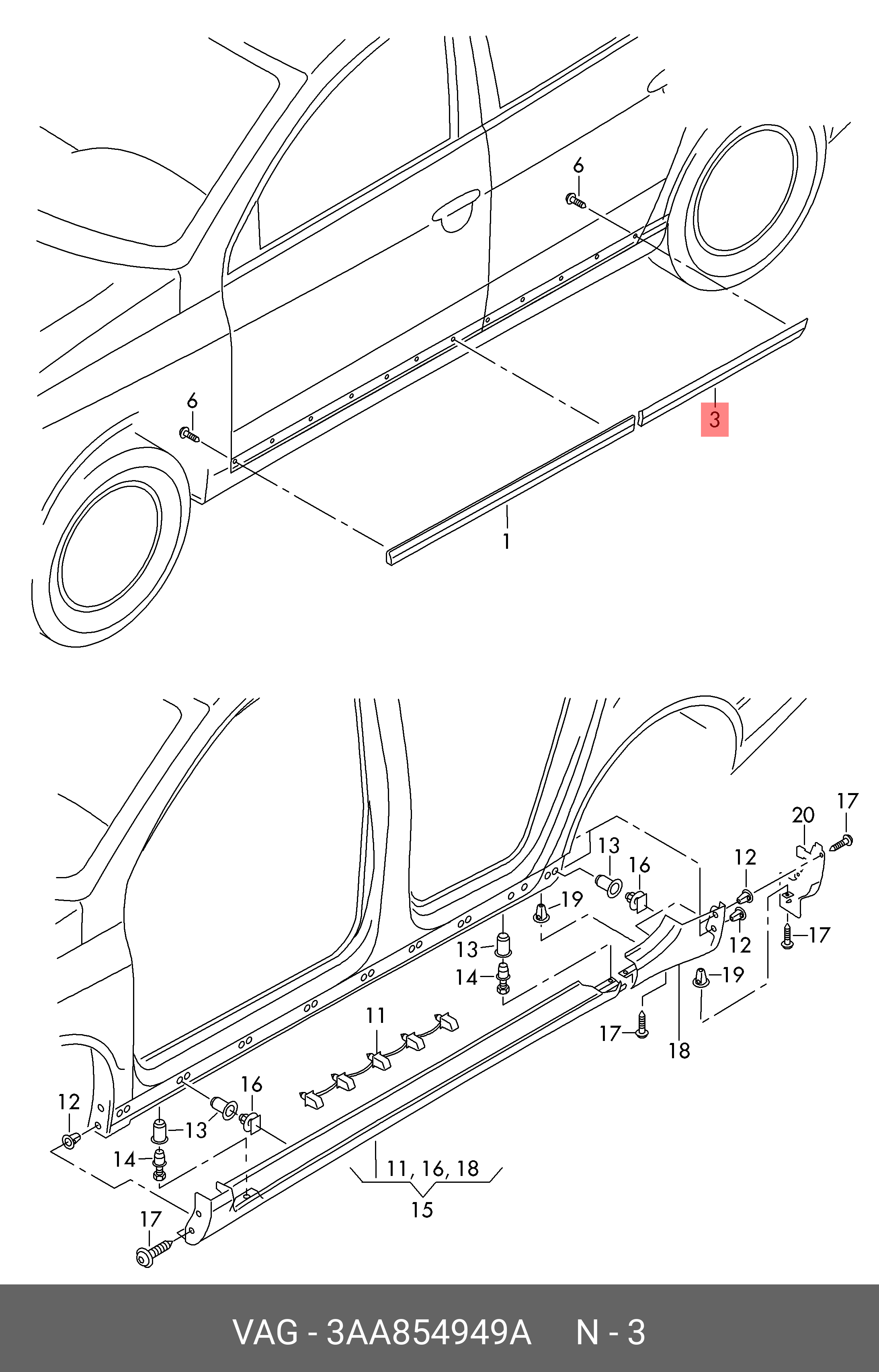 3AA 854 949 A VAG 3AA854949A Молдинг двери