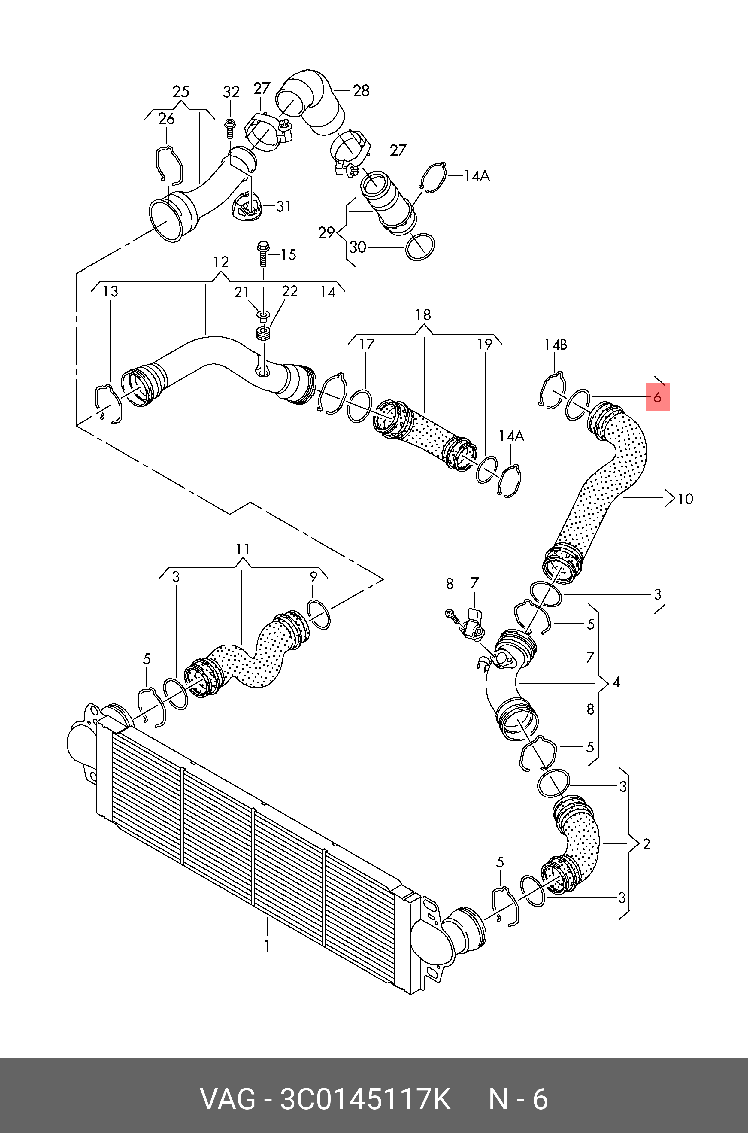 3C0 145 117 K VAG TRANSPORTER T5 (2003>) патрубка интеркуллера