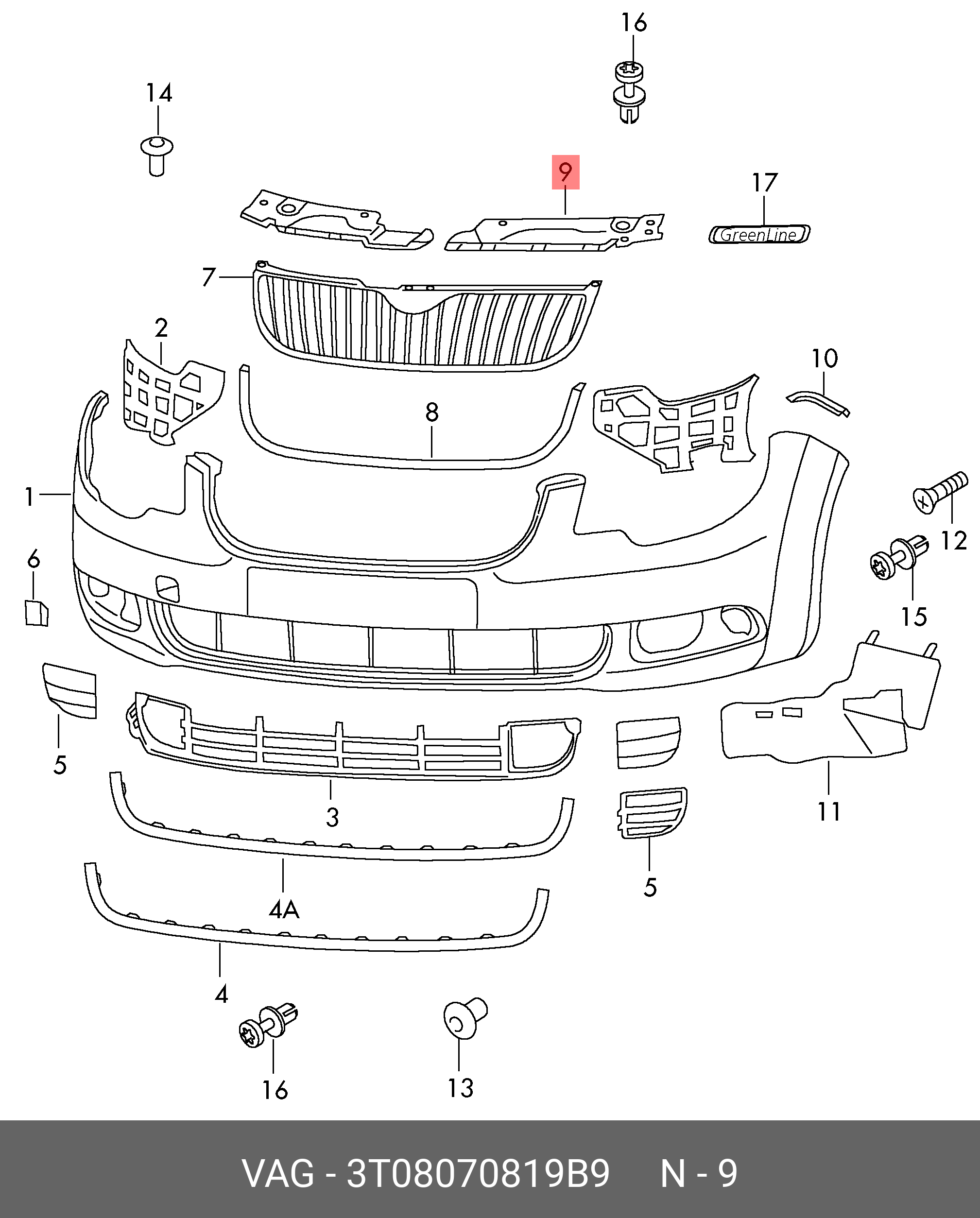 3T0 807 081 9B9 VAG Кожух SKODA Superb (08-14) решетки радиатора верхний левый OE