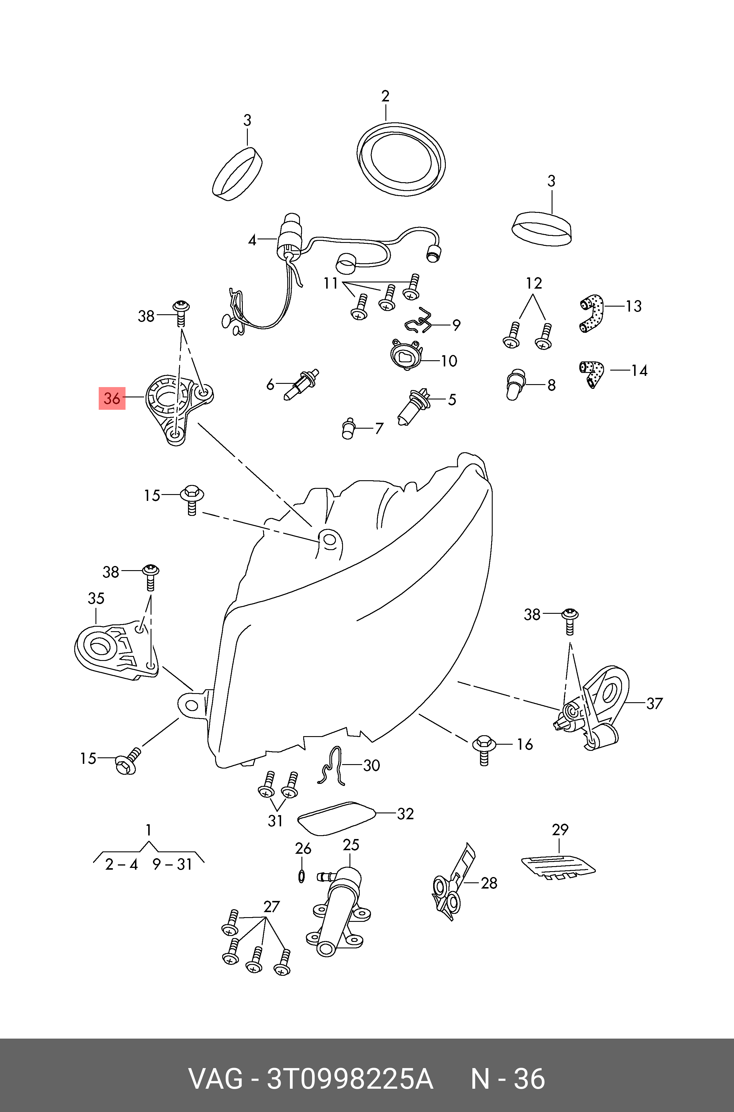 3T0 998 225 A VAG кронштейн крепления фары!\ Skoda Superb/3T4/ 3T5