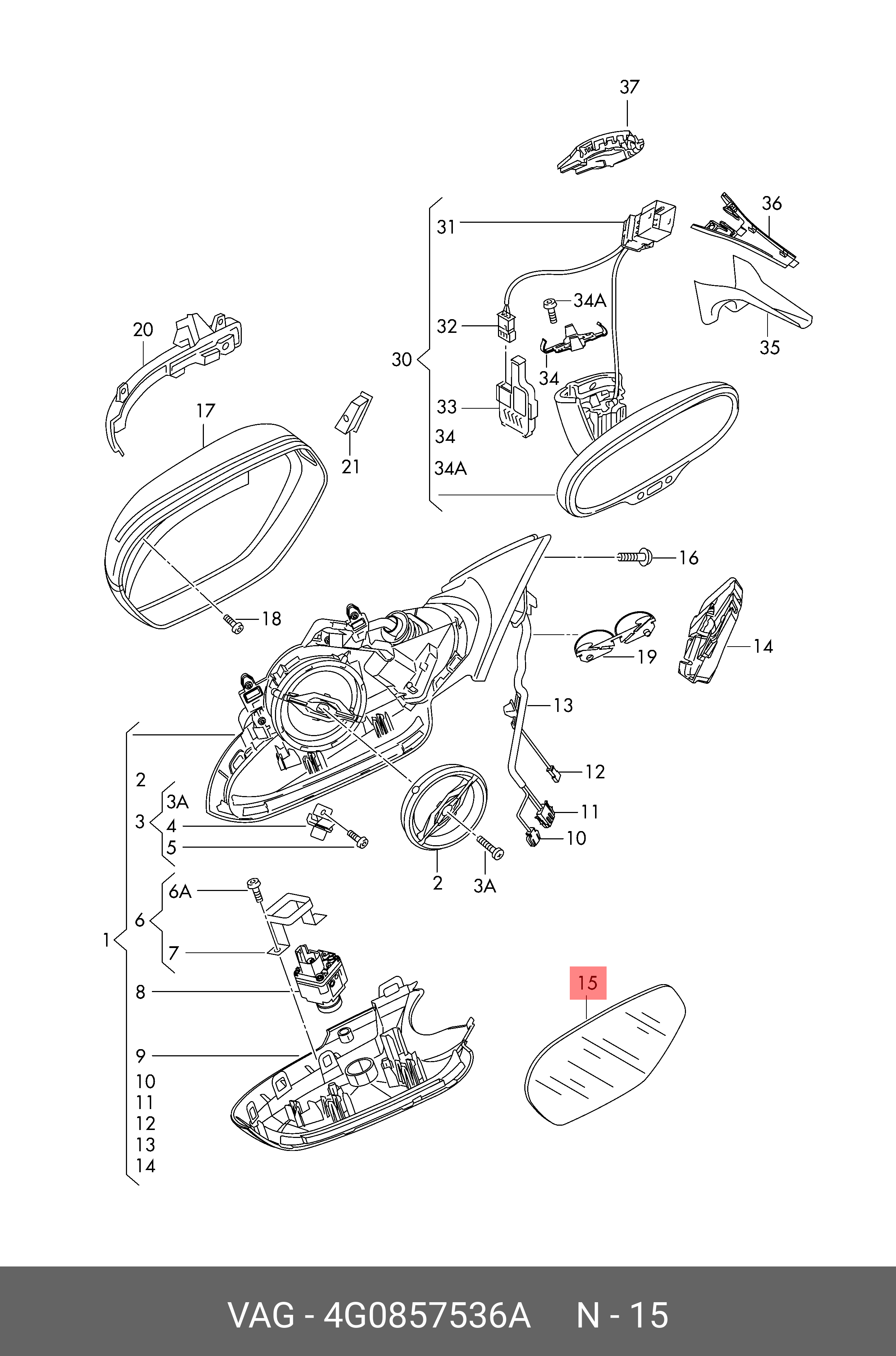 4G0 857 536 A VAG стекло зеркала правое! асферическое\ Audi A6 11>