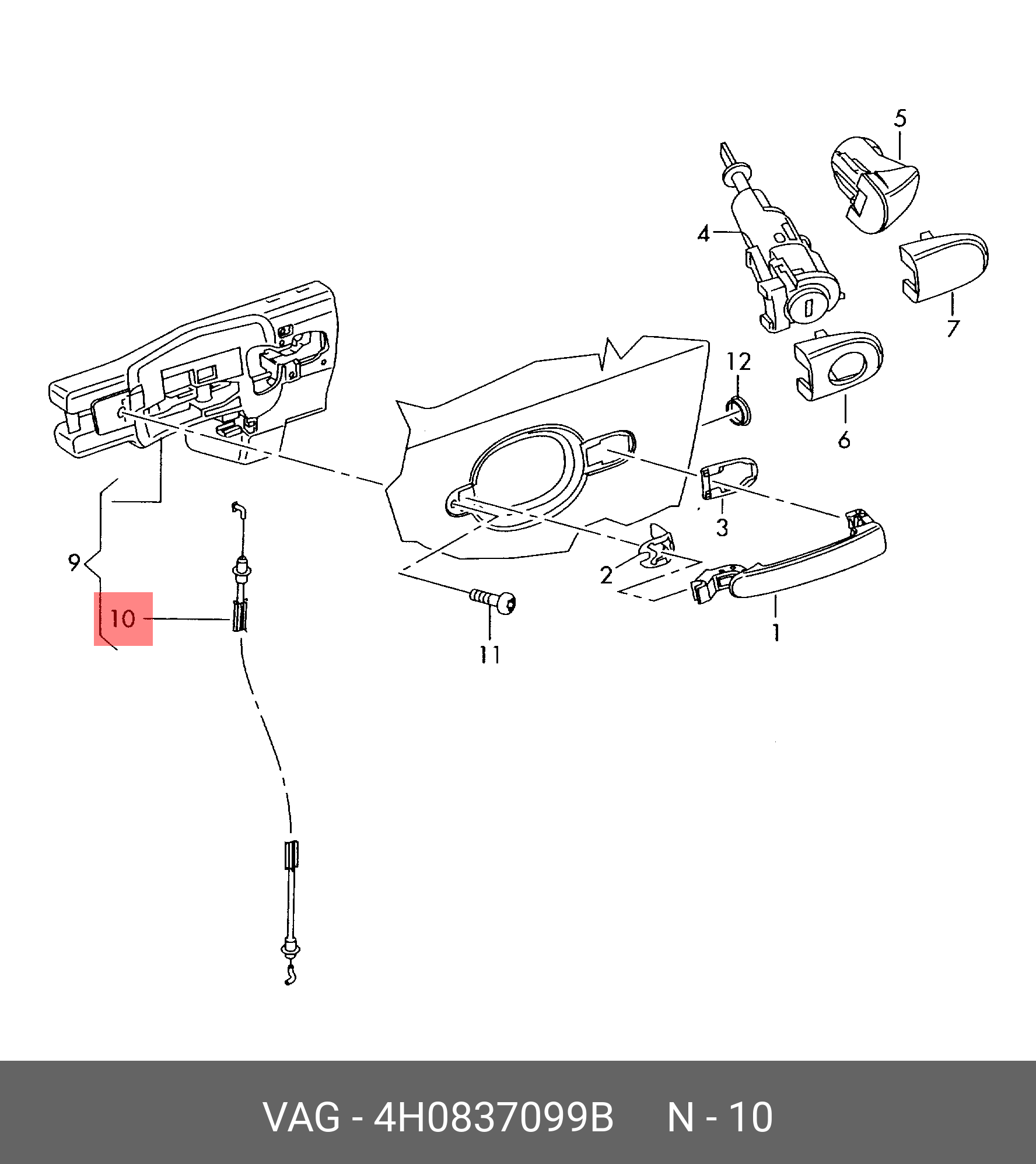 4H0 837 099 B VAG трос открывания двери!\ Audi A8 D4/4H 11-14