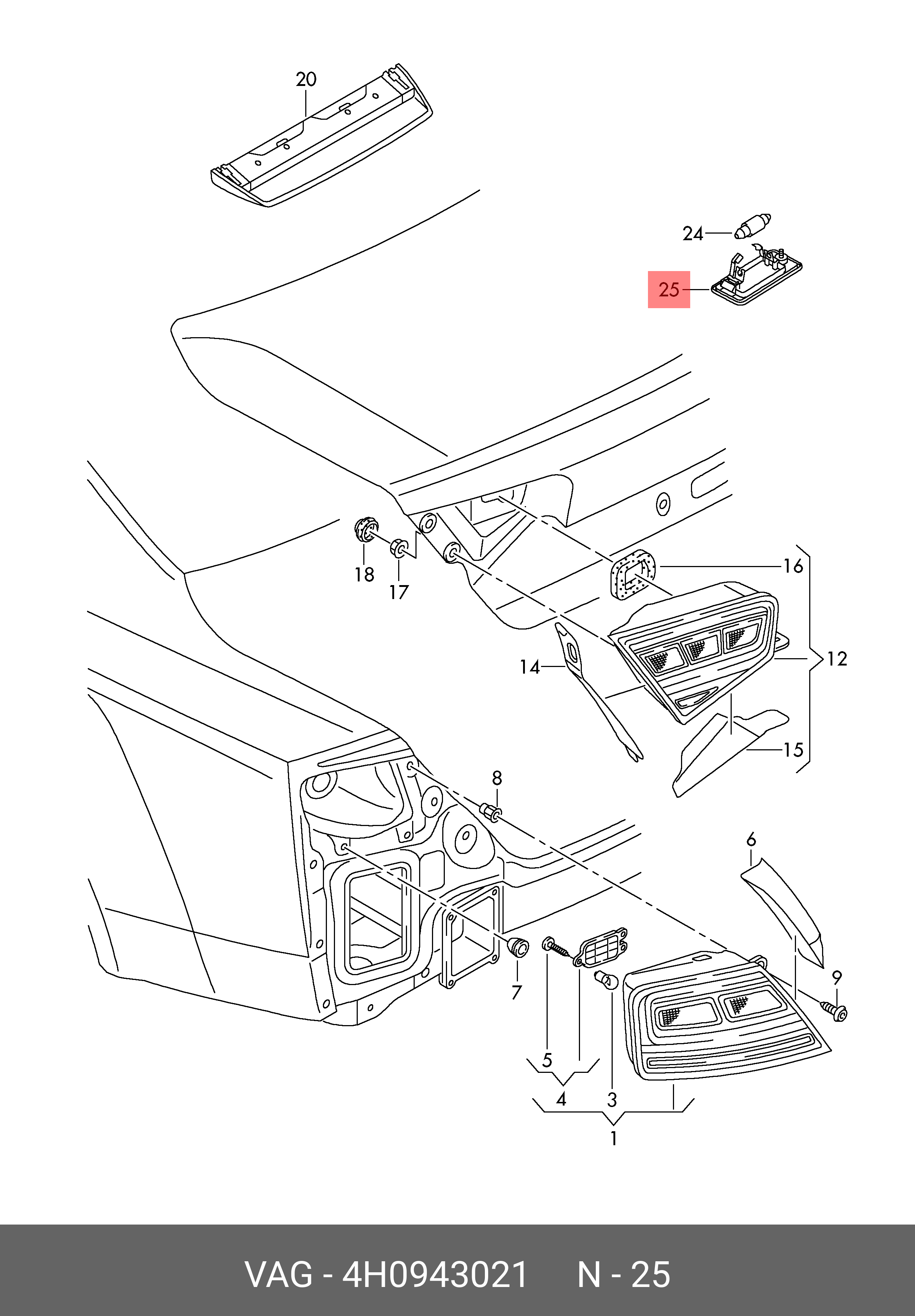 4H0 943 021 VAG фонарь подсветки заднего номерного знака!\ Audi A3 15-21/A5 12-17/A8 10-17