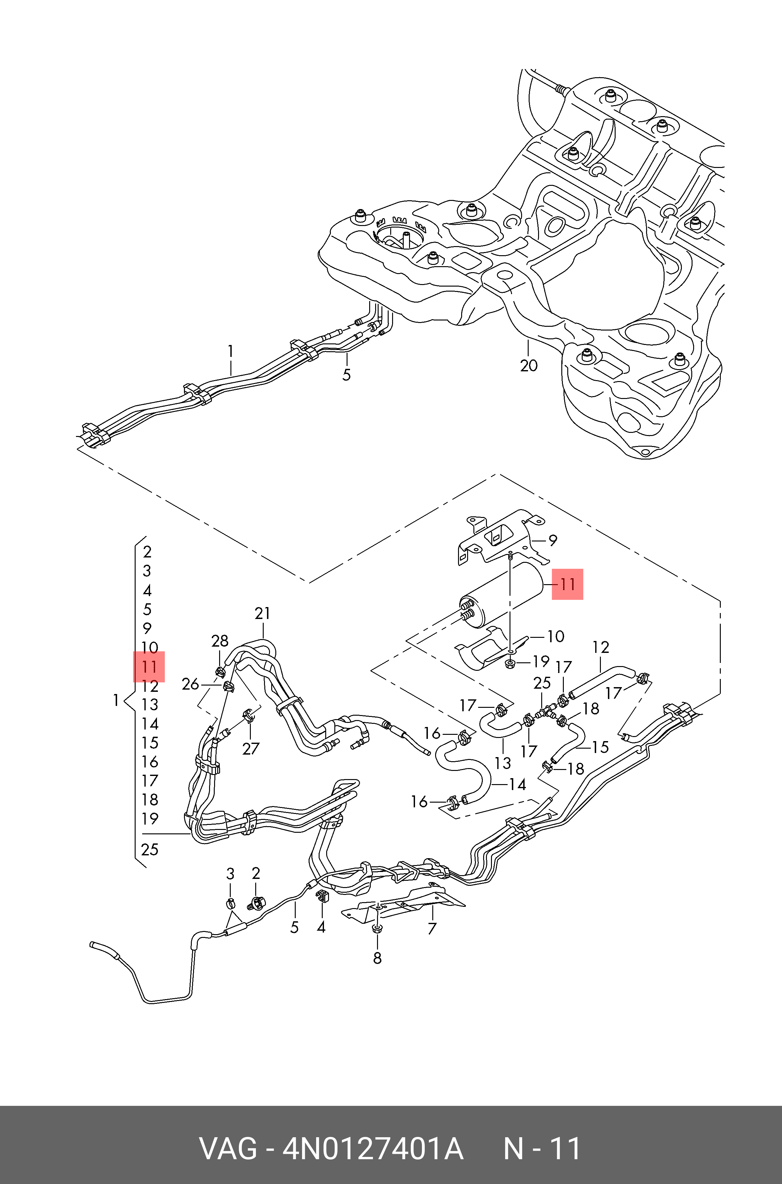 4N0 127 401 A VAG Фильтр топливный A6 (C8,4K) 2018- VAG 4N0127401A