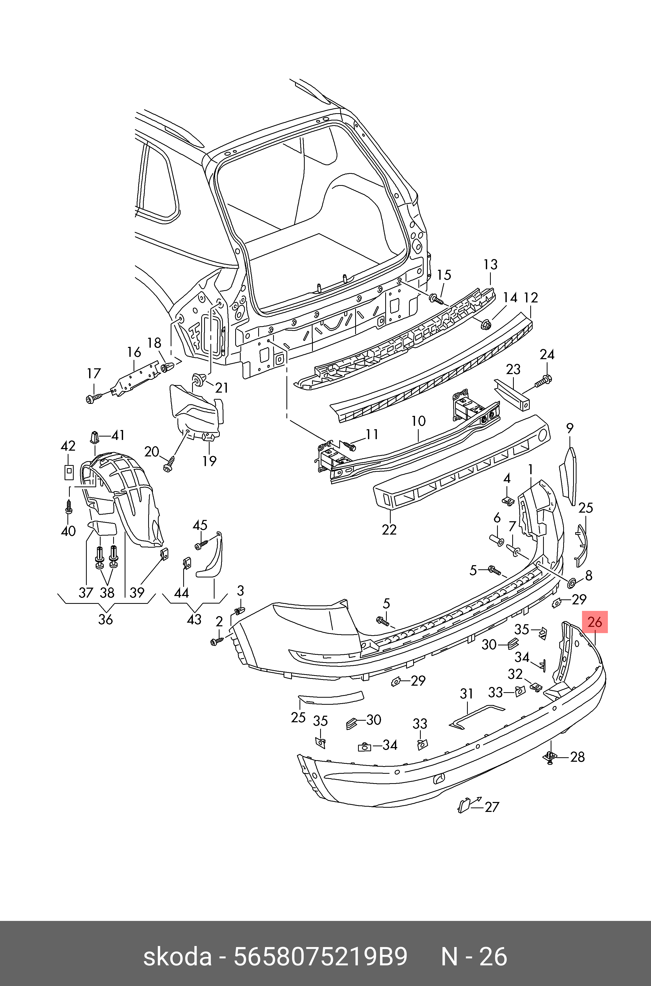 565 807 521 9B9 VAG спойлер бампера заднего!\ Skoda Kodiaq 17>