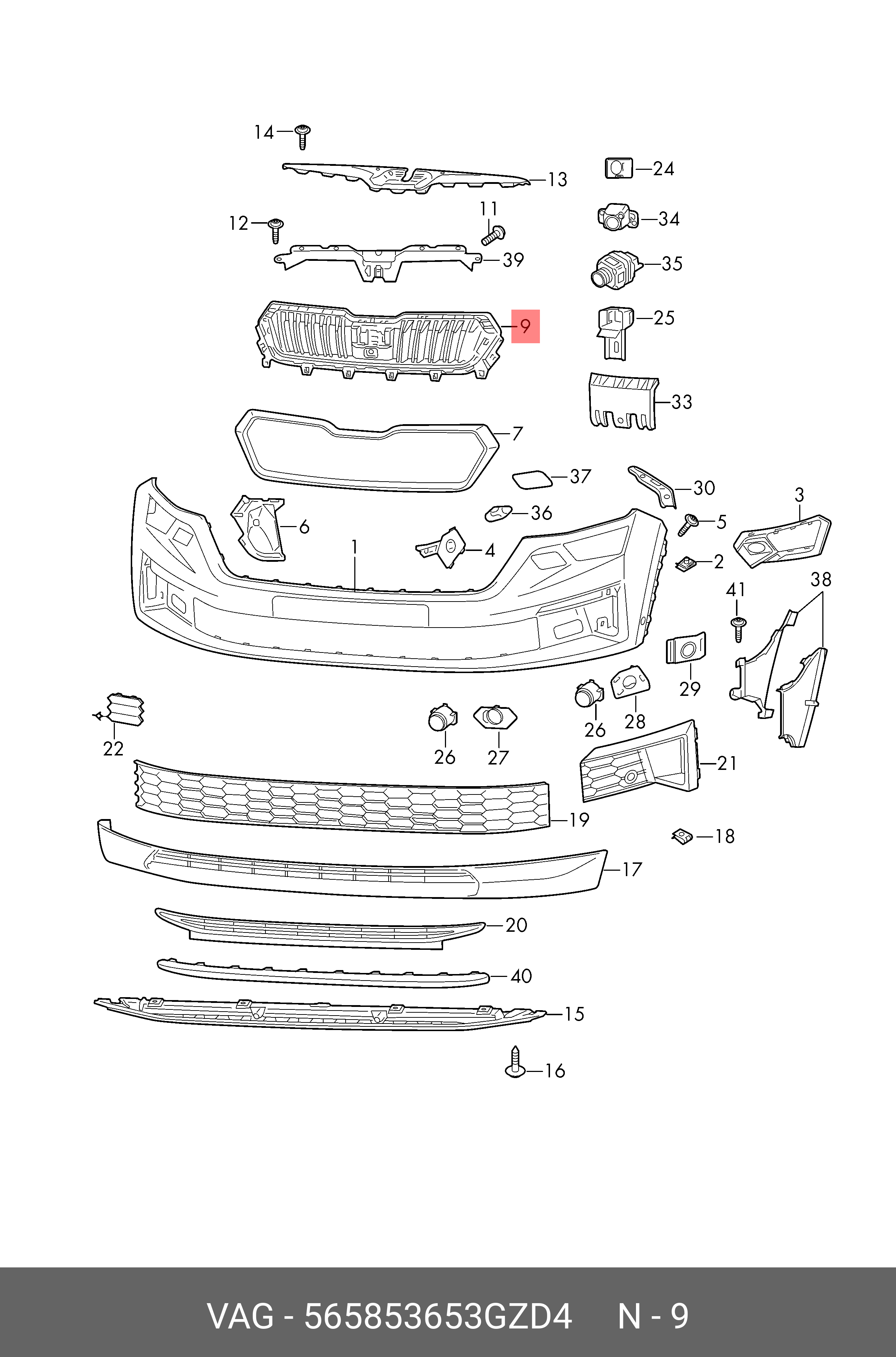 565853653GZD4 VAG Решётка чёрный jet b 565853653GZD4