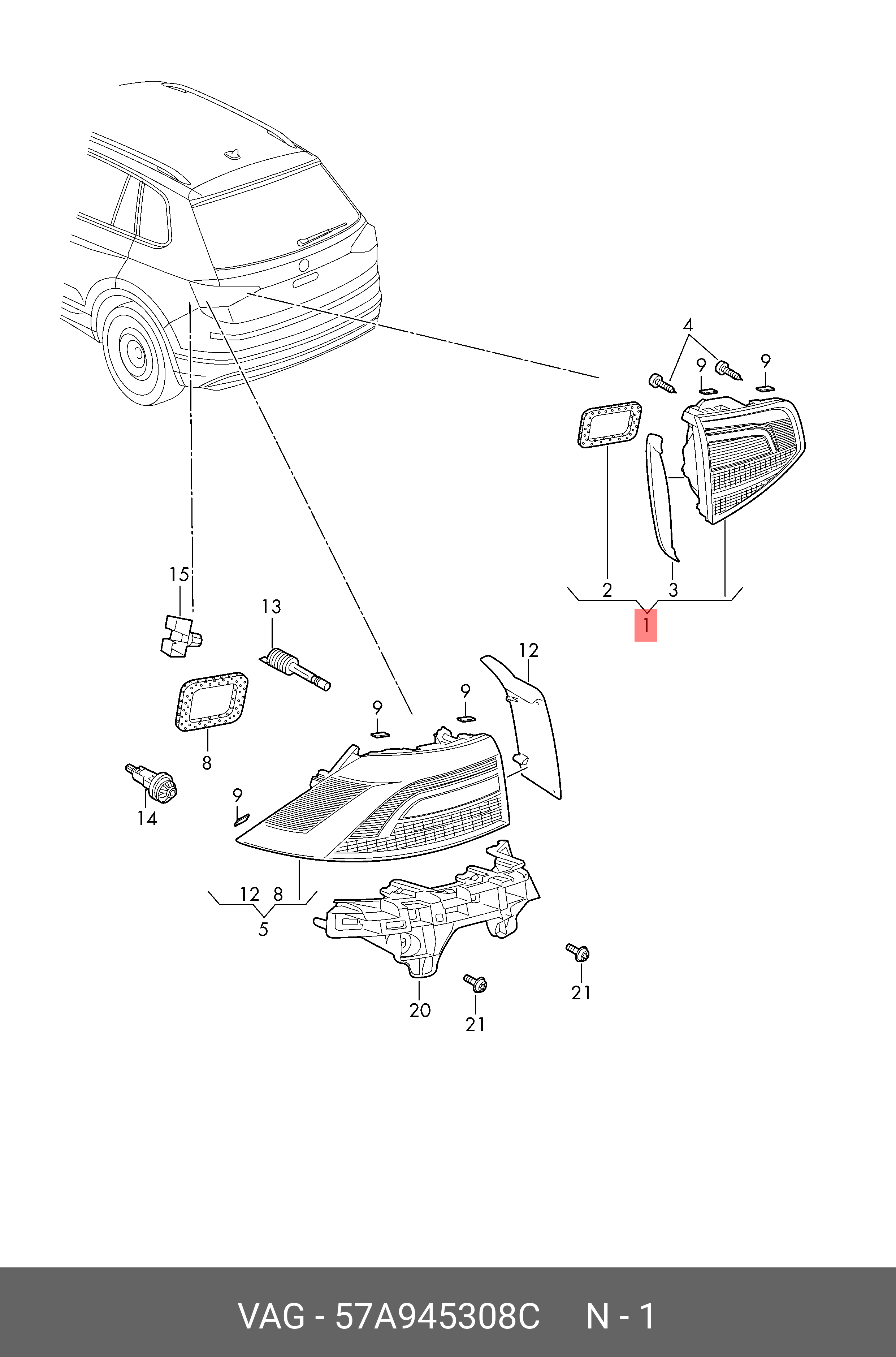 57A945308C VAG Фонарь задний SKODA Karog OE