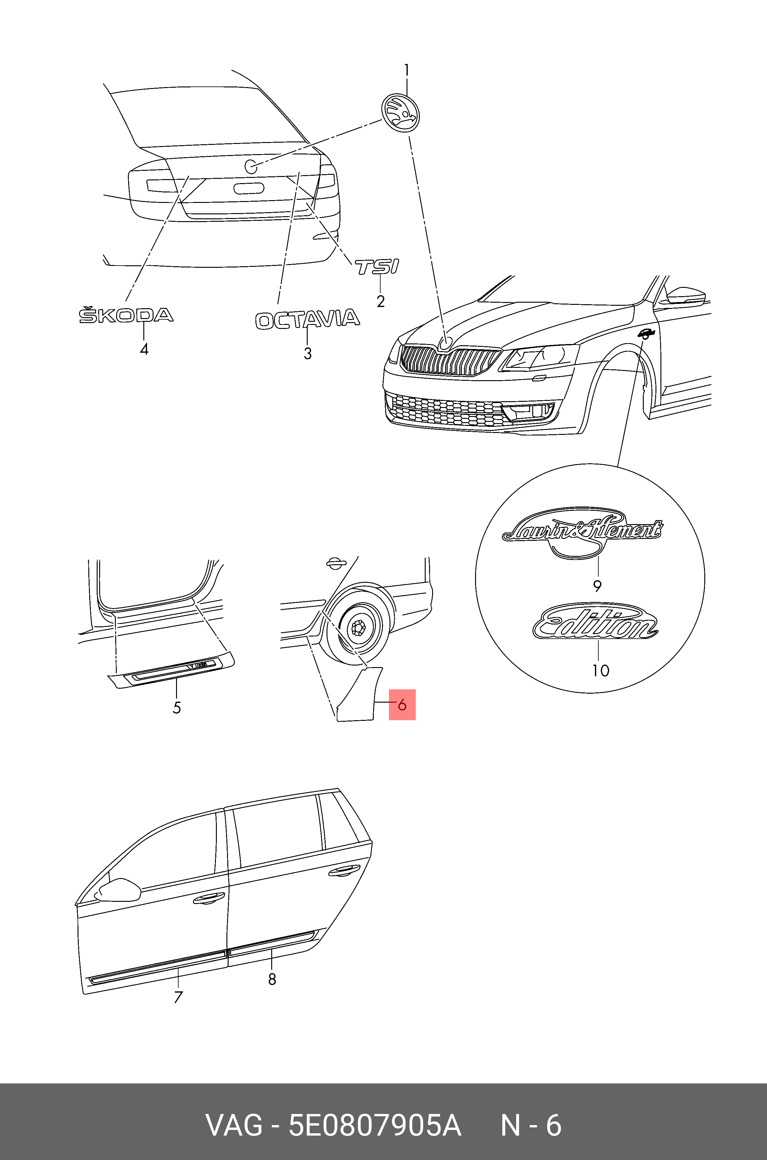 5E0 807 905 A VAG SKODA OCTAVIA (A7) (2013>) Наклейка антигравийная задней левой колёсной арки