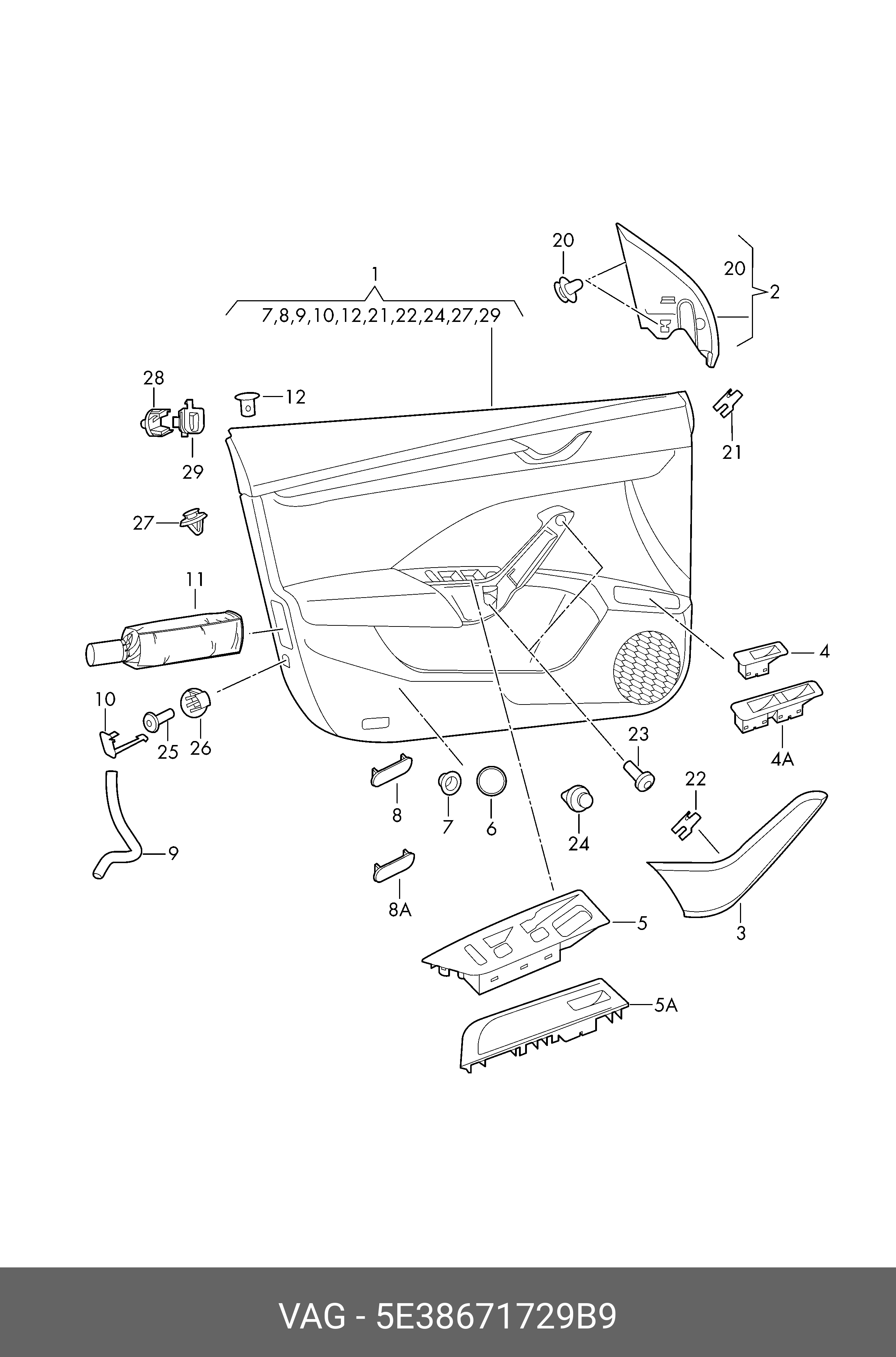 5E38671729B9 VAG Верхняя часть оболочки рукоят. чёрный sa 5E38671729B9