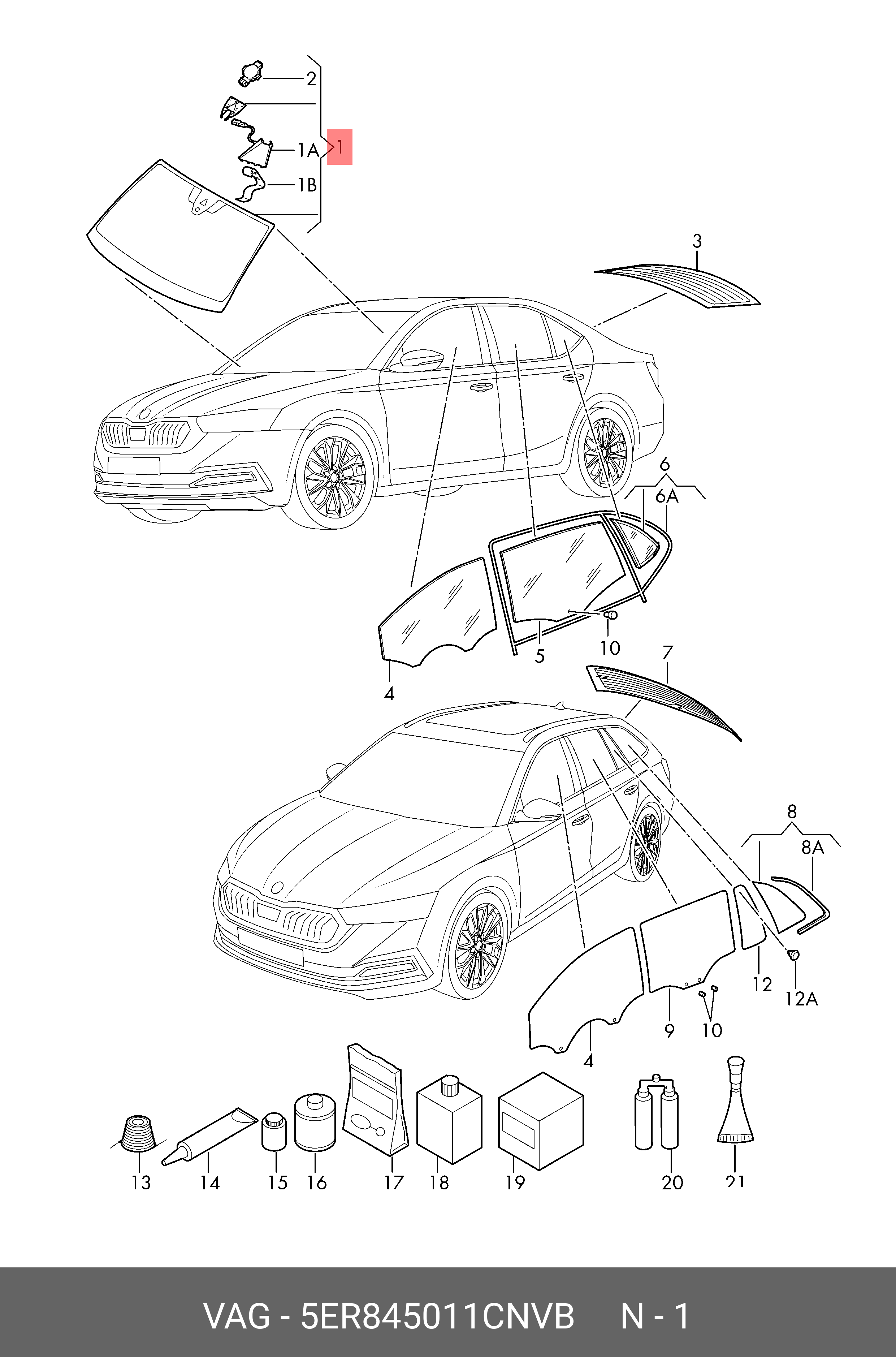 5ER845011CNVB VAG Стекло ветровое SKODA Octavia (20-) OE
