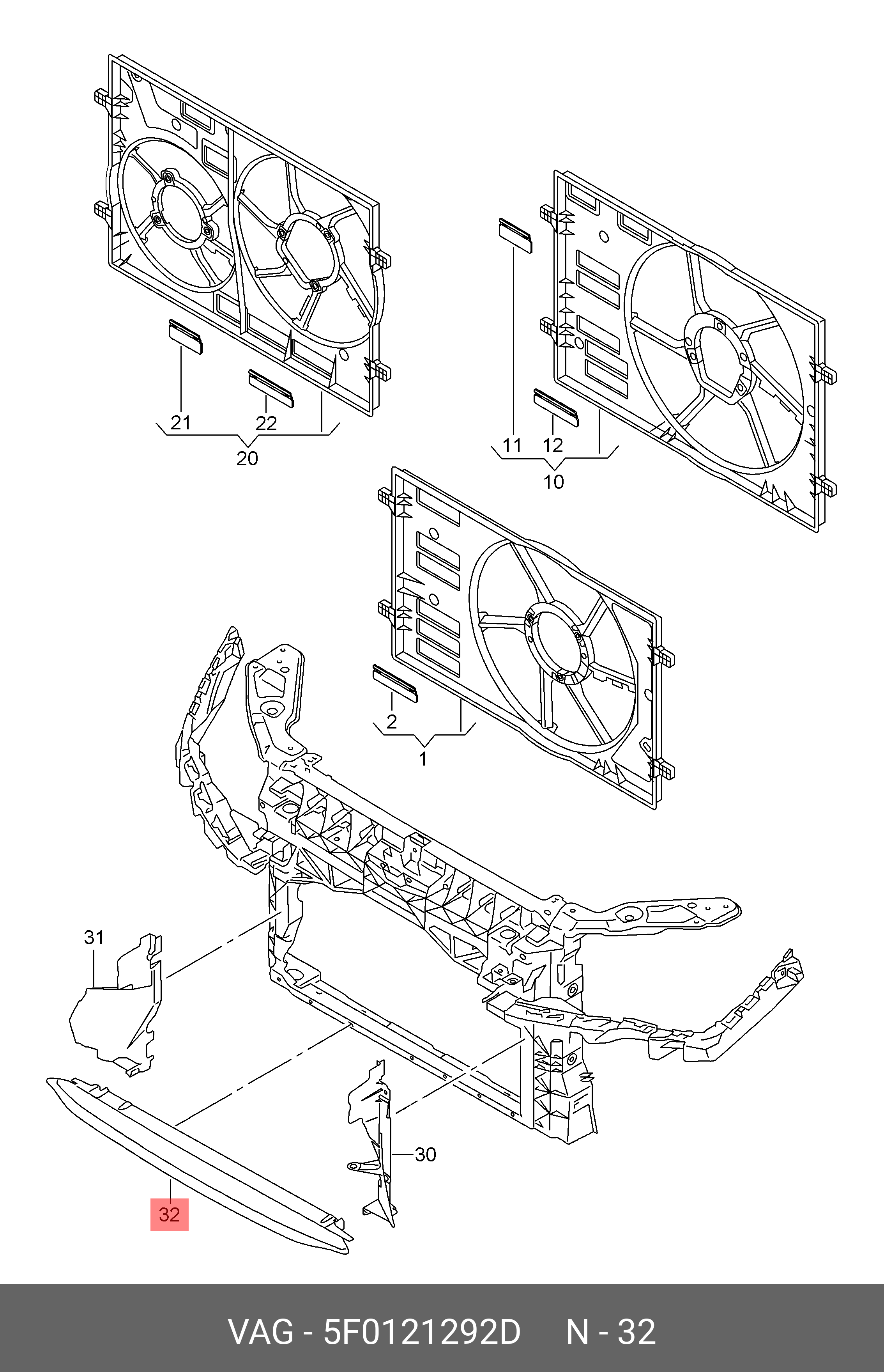 5F0 121 292 D VAG ДЕФЛЕКТОР РАДИАТОРОВ НИЖНИЙ