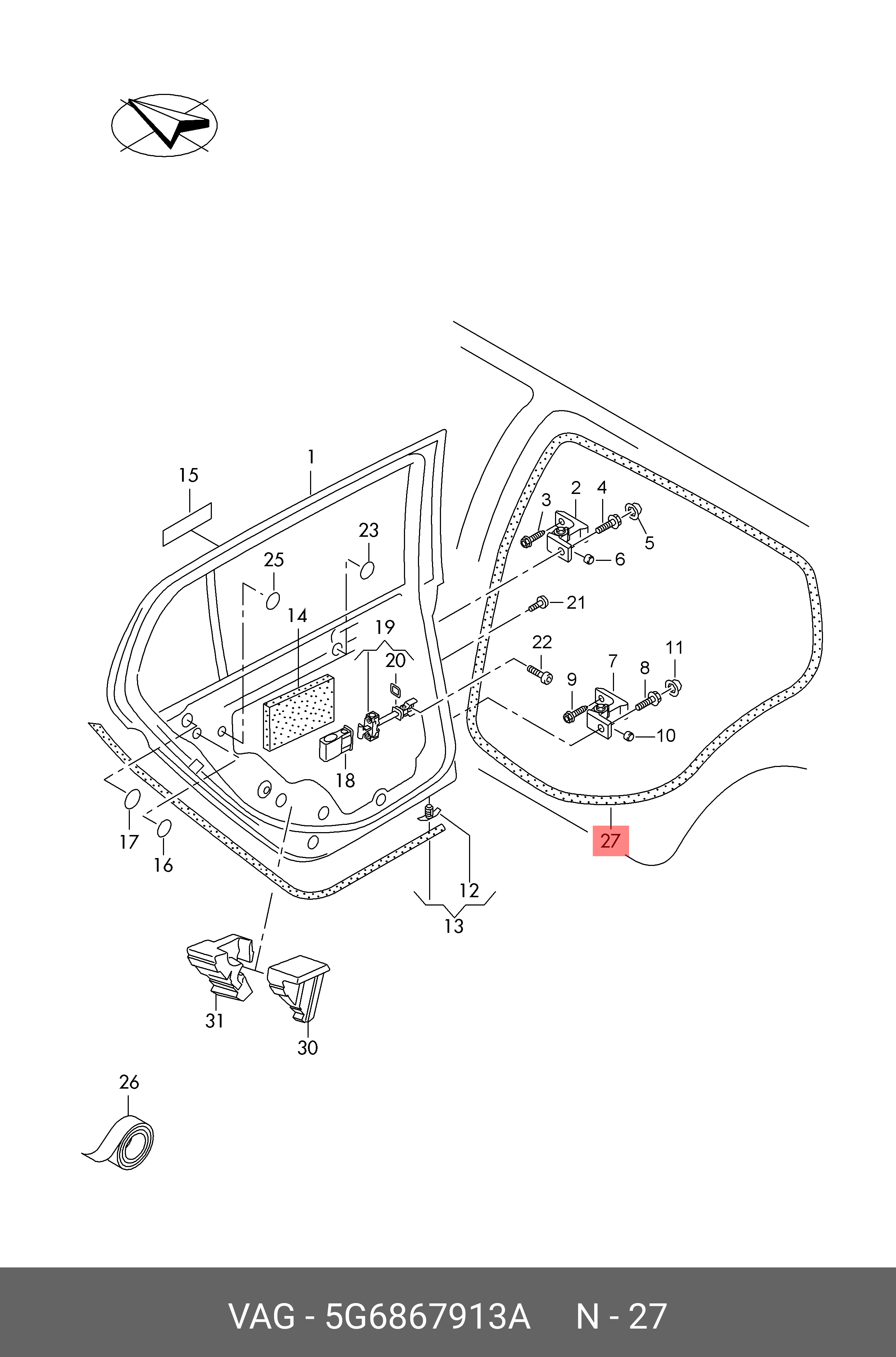 5G6 867 913 A VAG 5G6867913A Уплотнитель двери внутри