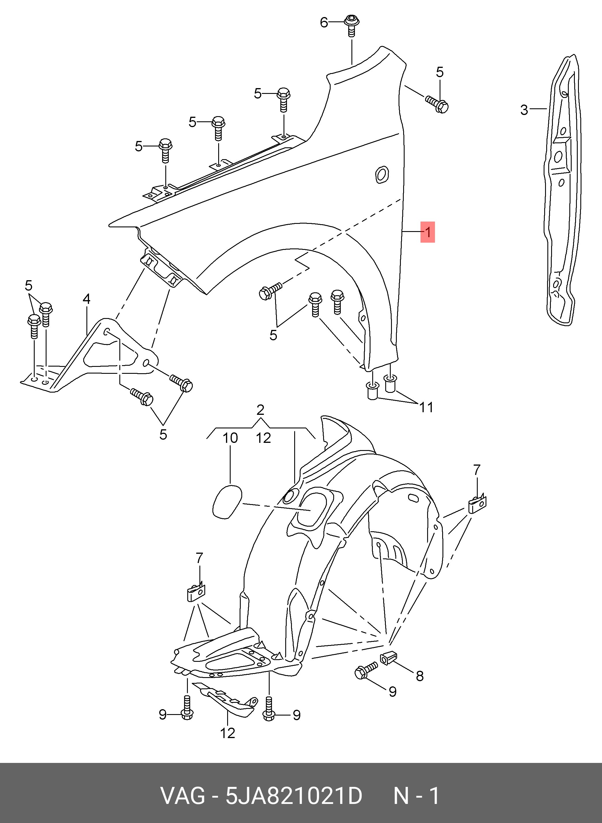 5JA 821 021 D VAG крыло переднее! левое без отв.\ Skoda Rapid 13>