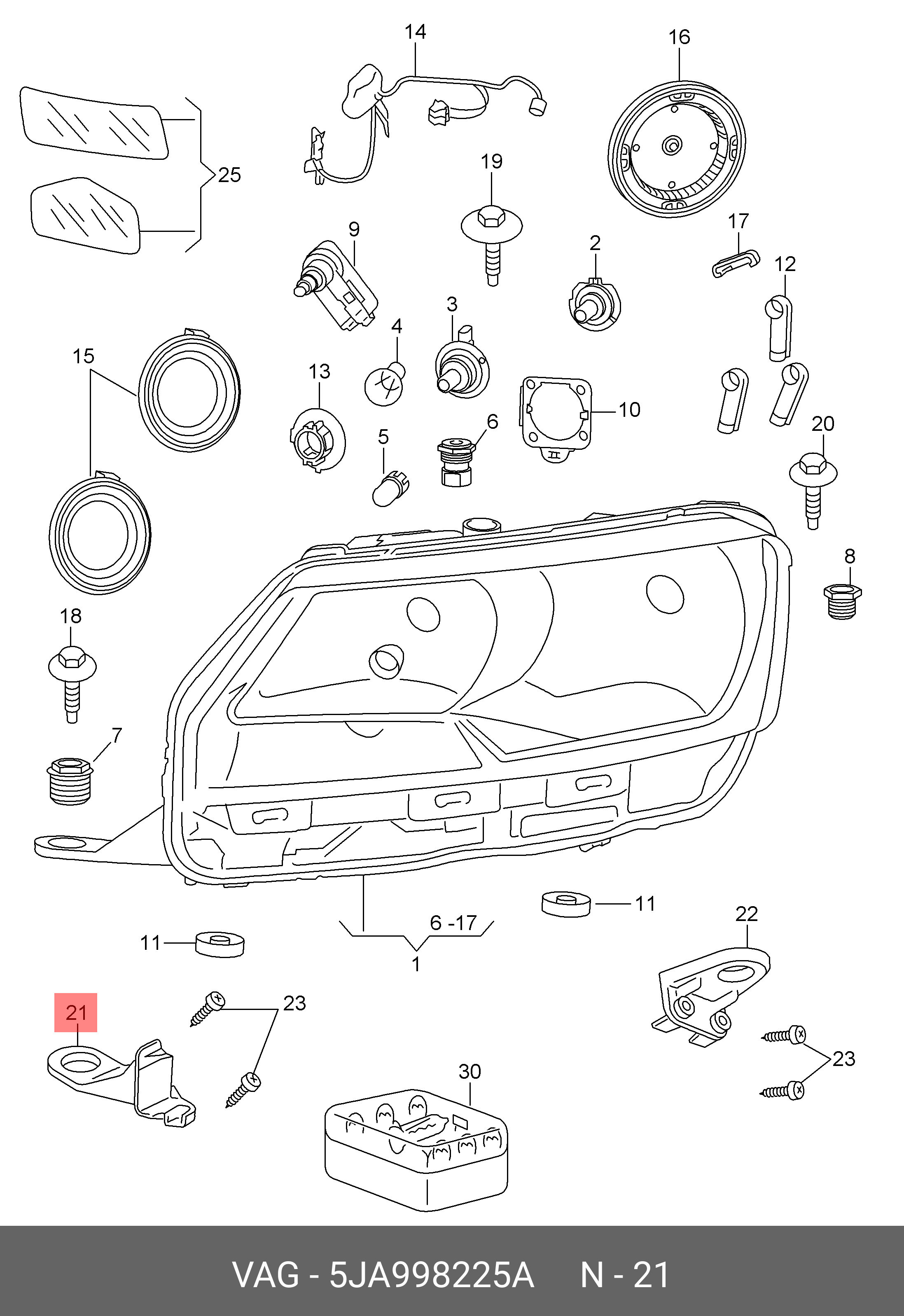 5JA 998 225 A VAG ЭЛЕМЕНТ КРЕПЛЕНИЯ 5JA998225A