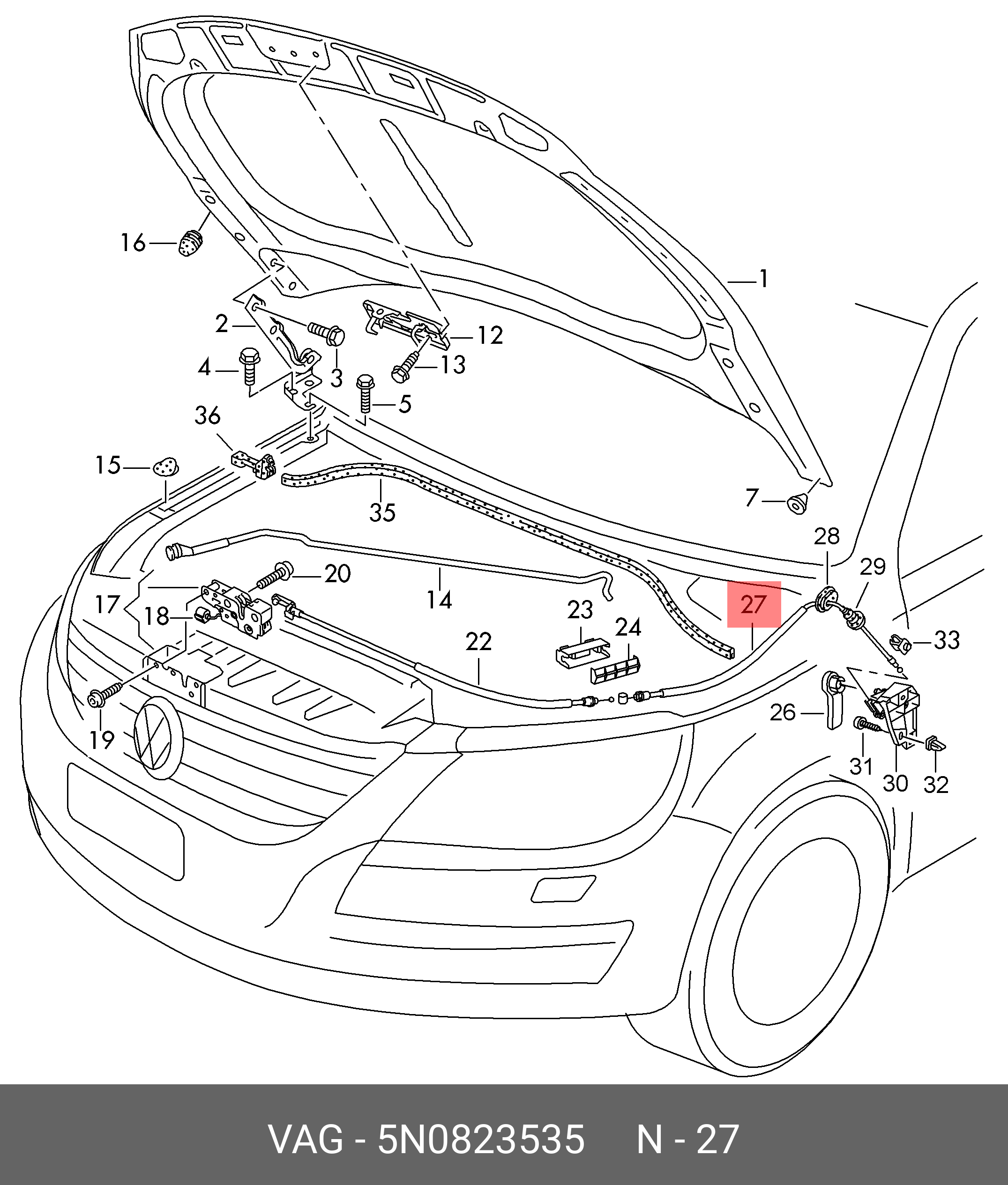 5N0 823 535 VAG трос капота!\VW/Audi