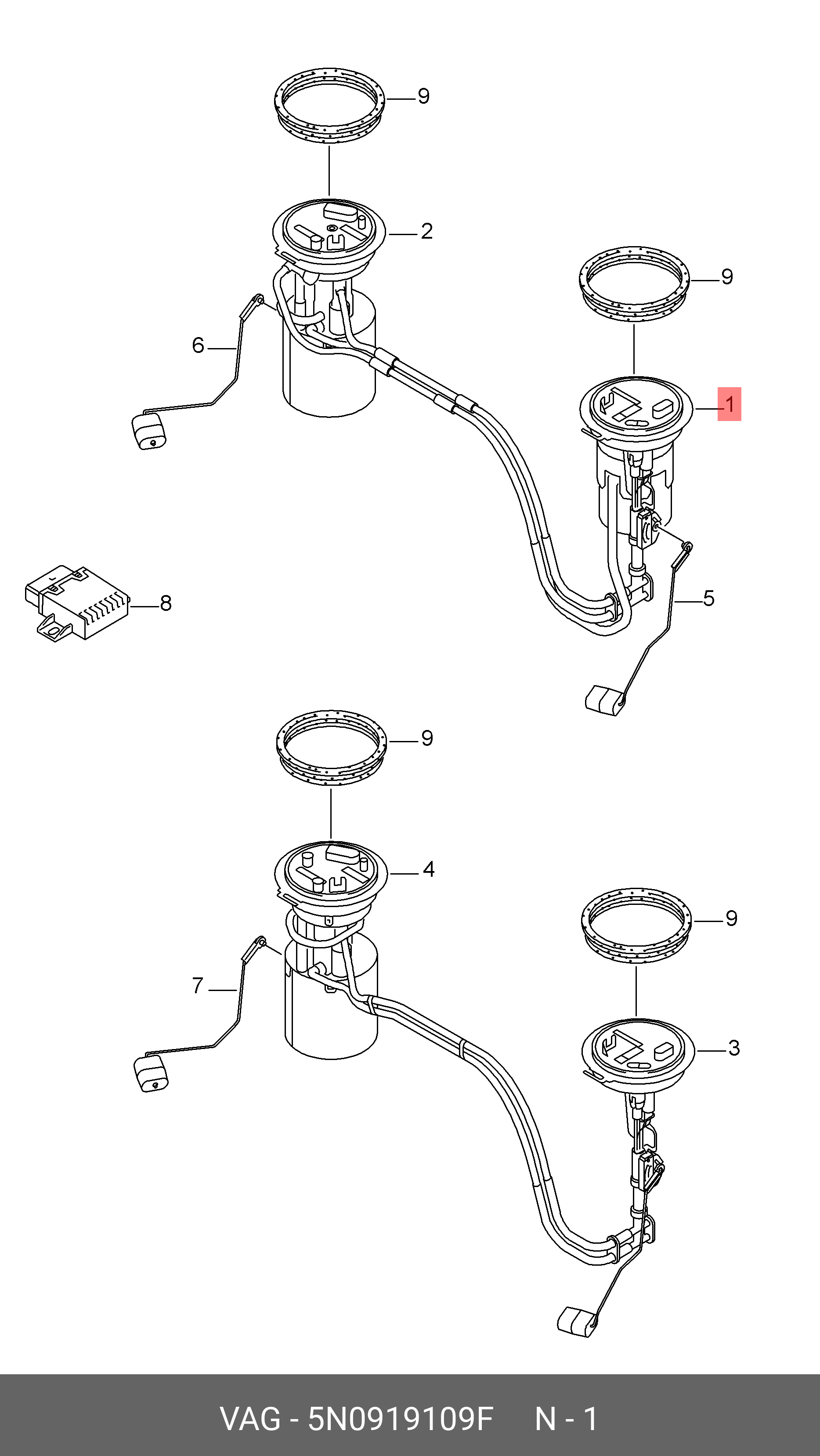 5N0 919 109 F VAG Фильтр топливный VW Tiguan AUDI Q3 (TSI TFSI) с датчиком уровня топлива OE