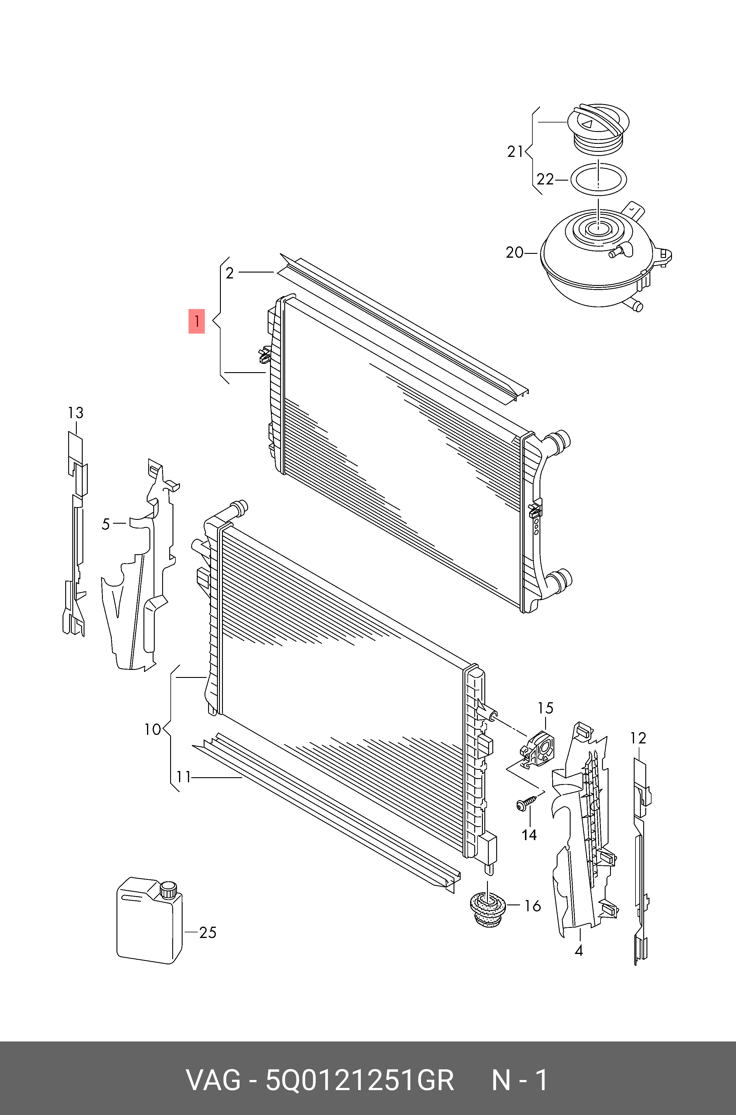 | Наименование | Радиатор охлаждающей жидкости 5Q0121251GR |