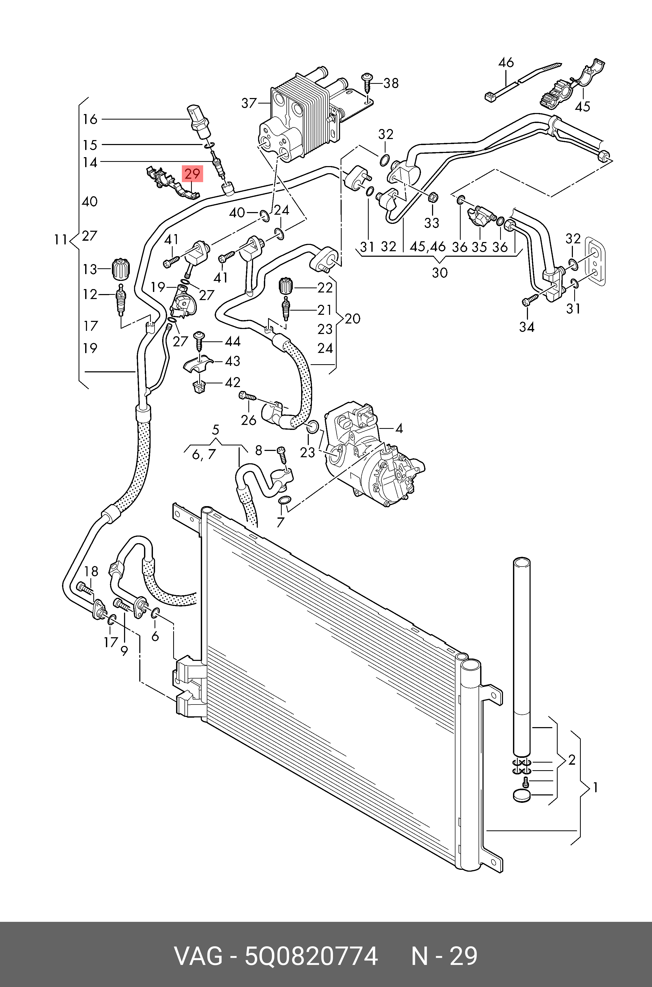 5Q0 820 774 VAG Хомут SKODA Octavia (13-) трубки кондиционера ОЕ