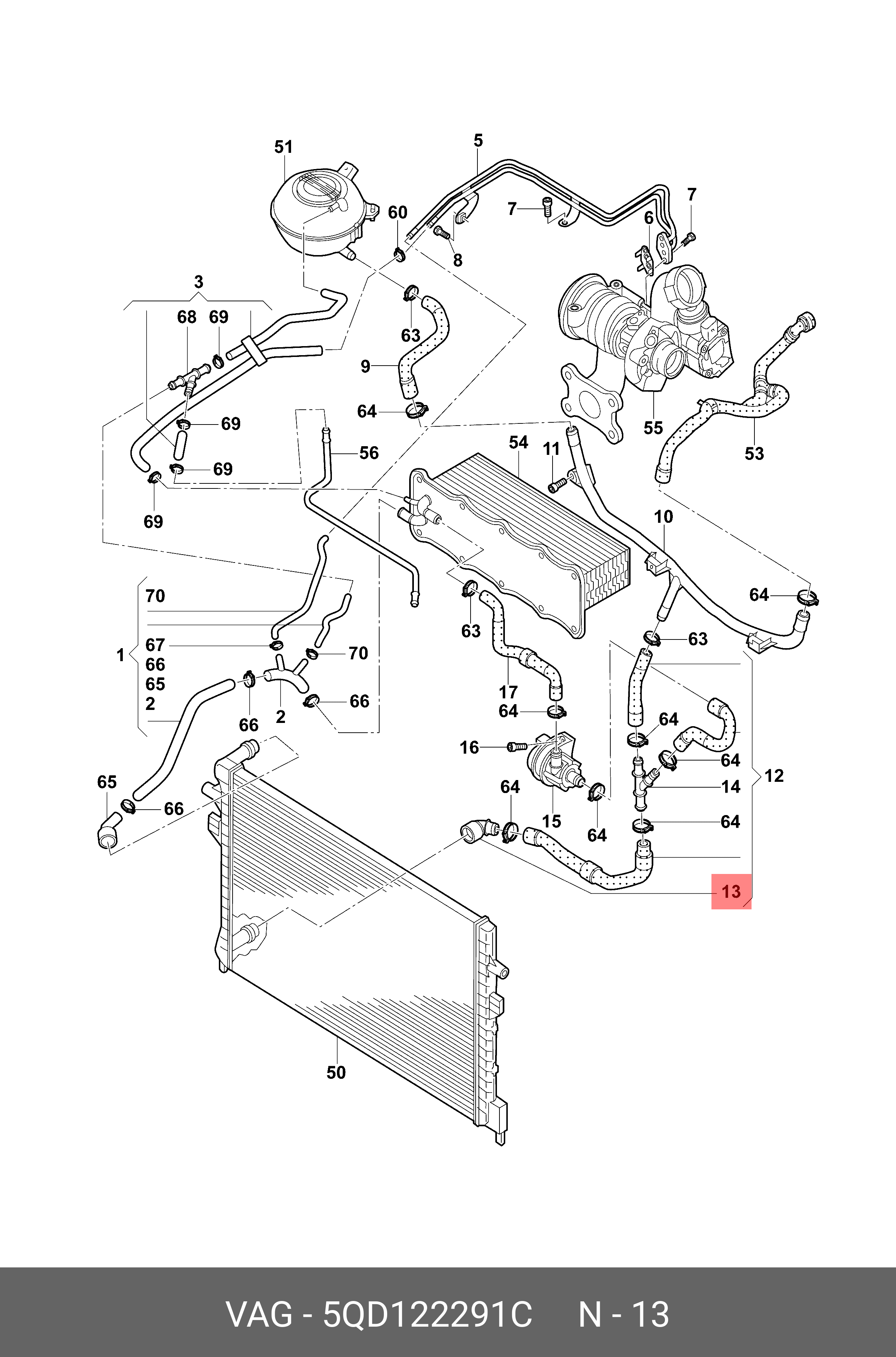 5QD 122 291 C VAG Фланец VW Touareg (04-10) AUDI A3,TT SKODA Octavia (04-) системы охлаждения OE