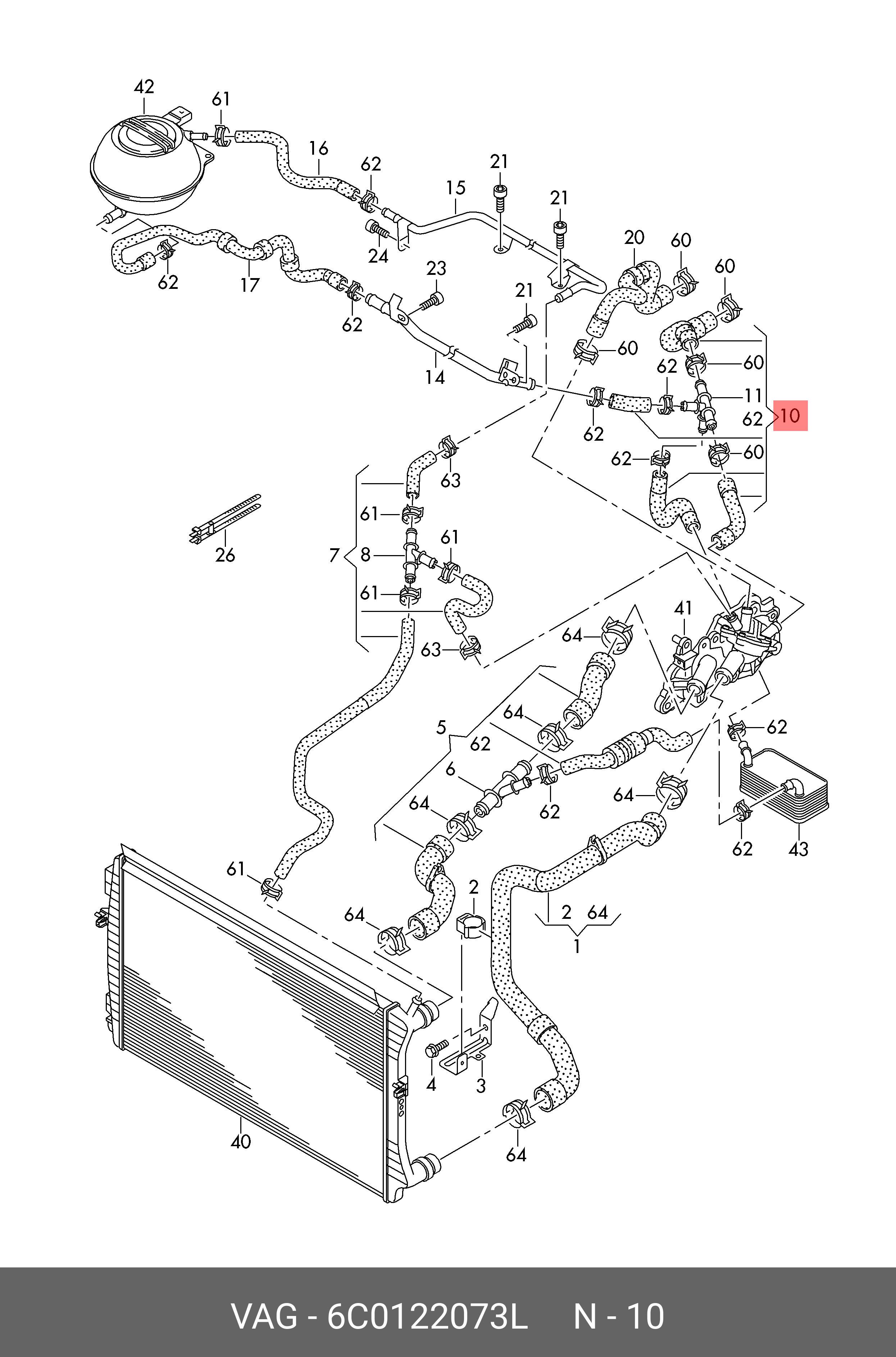 6C0 122 073 L VAG Шланг VW AUDI системы охлаждения OE