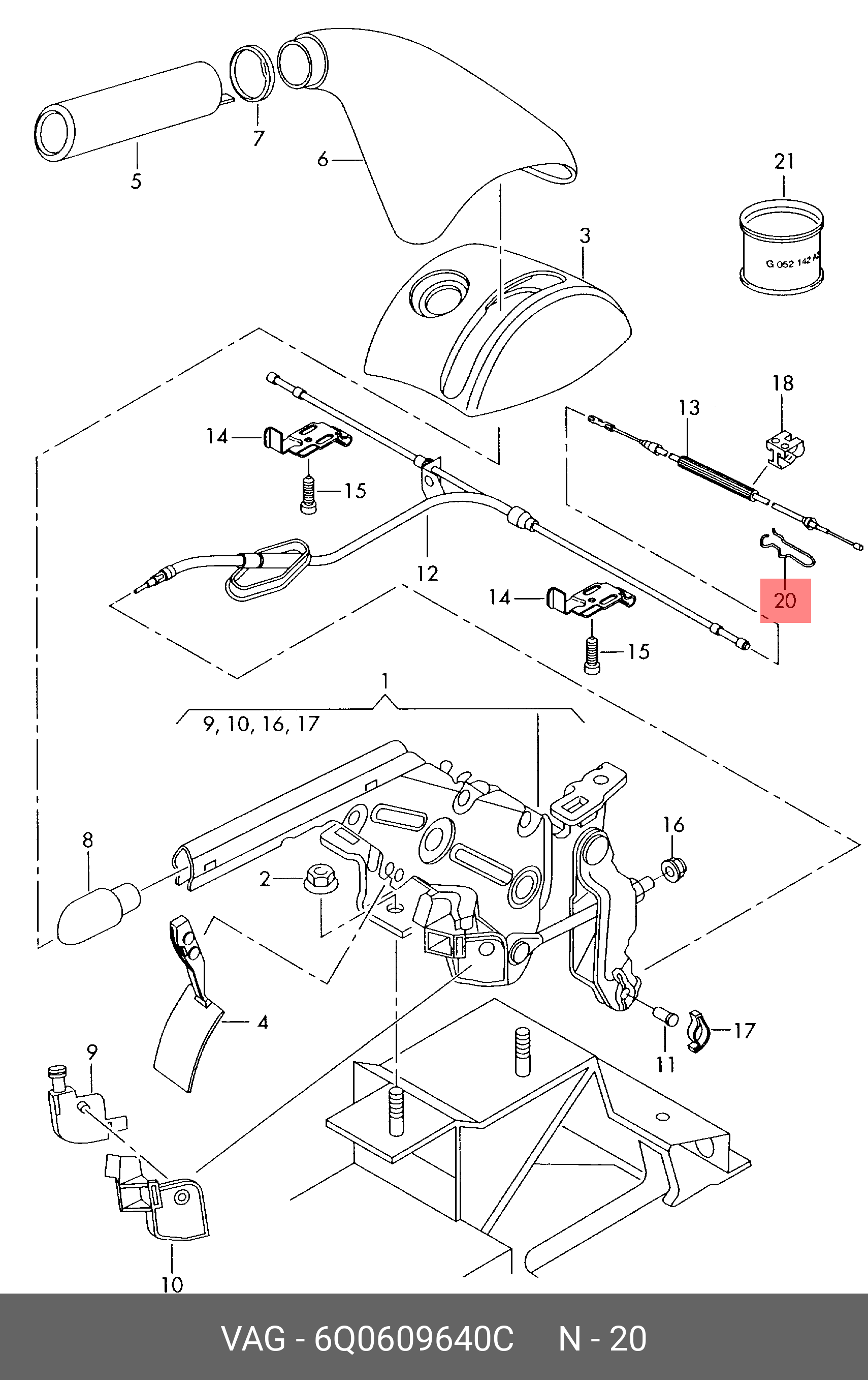 6Q0609640C VAG (8 ГР.), КРОНШТЕЙН ТРОСА СТОЯН. ТОРМОЗА