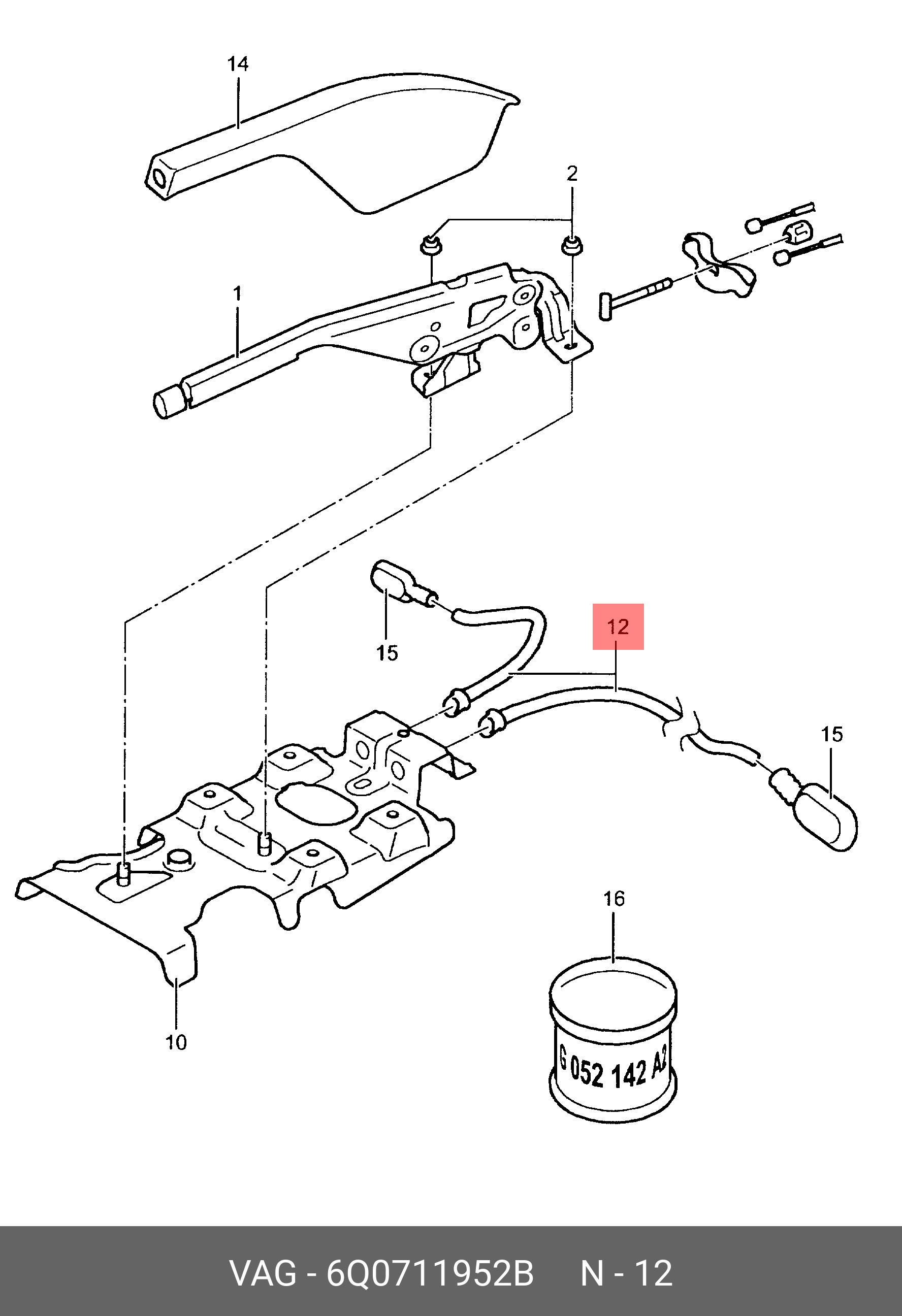 6Q0 711 952 B VAG направляющая ручного тормоза!\ VW Polo 01-09, Seat Ibiza IV/Cordoba 02-08