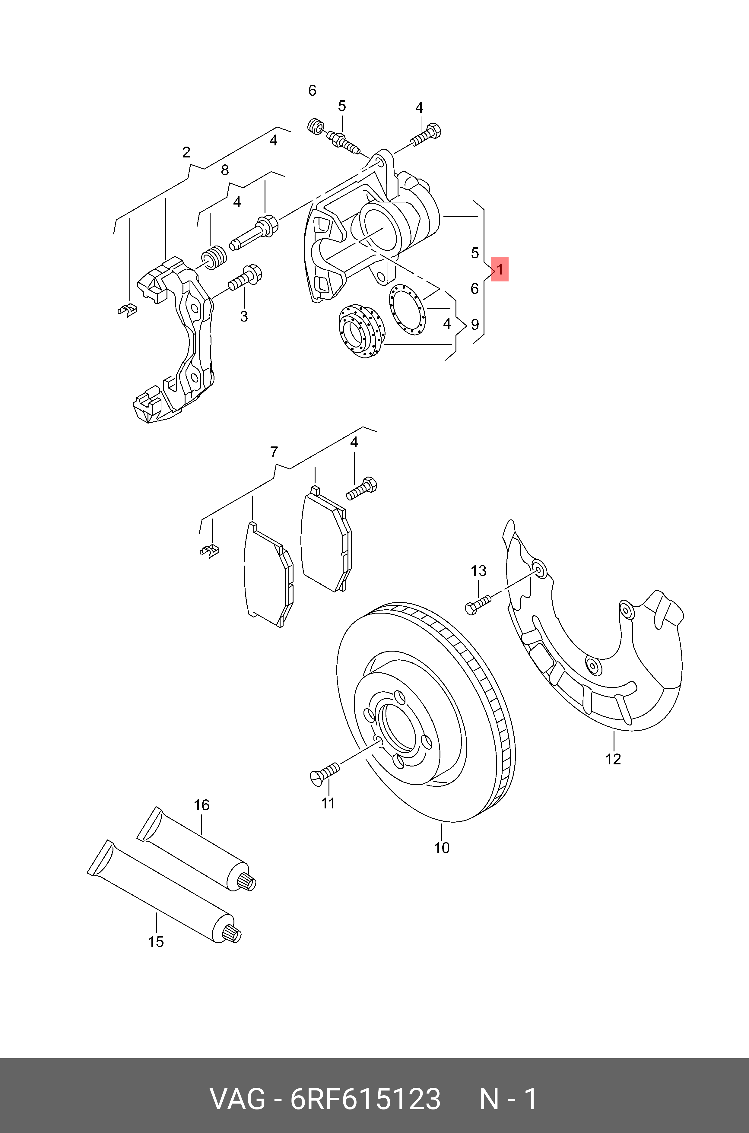 6RF 615 123 VAG Суппорт VW Polo (11-) передний левый OE