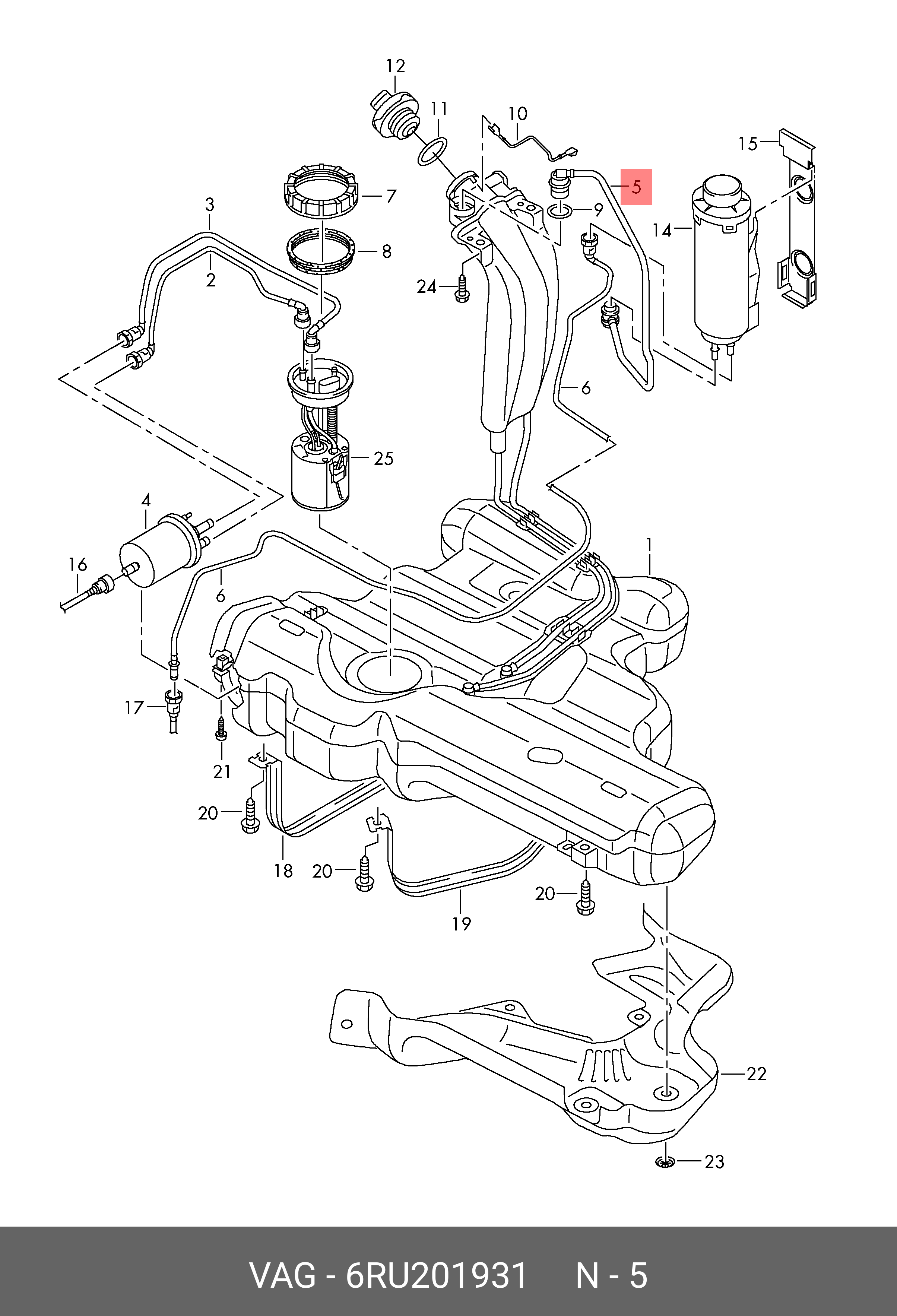 6RU 201 931 VAG Трубка топливная SKODA Rapid (13-21) бака топливного OE