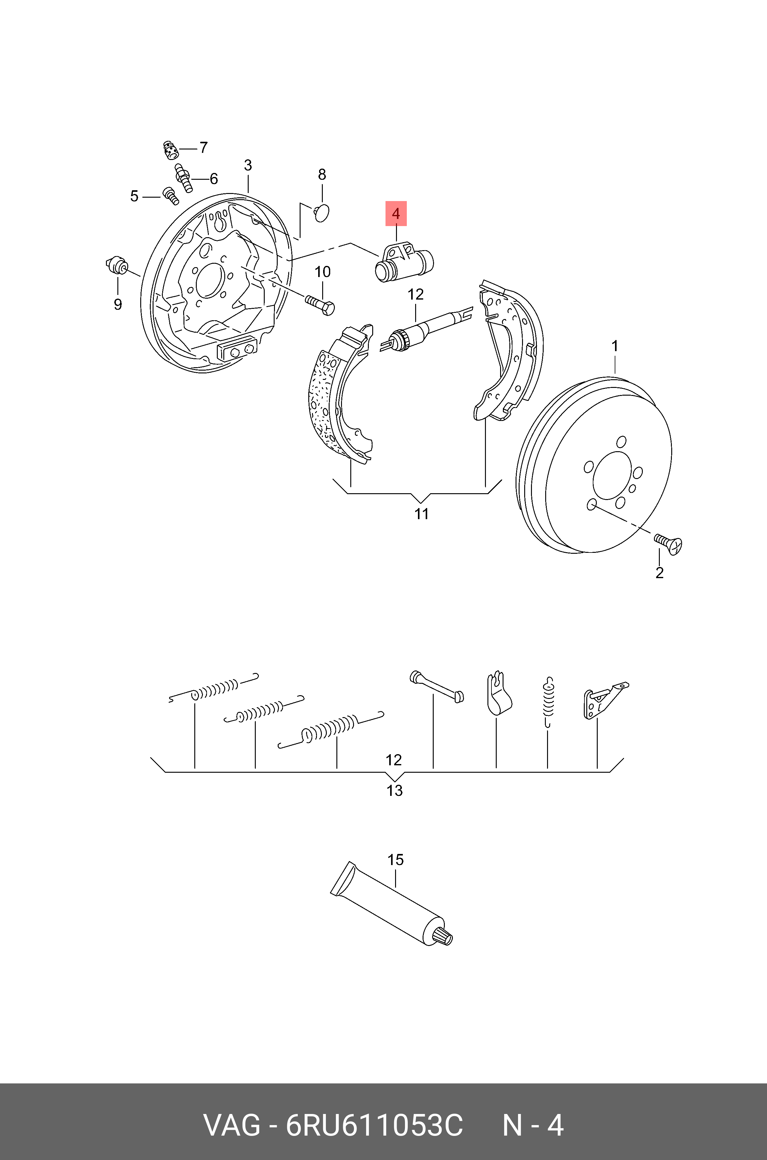 6RU 611 053 C VAG цилиндр тормозной рабочий задний! левый и правый\ VW Polo 10>, Skoda Rapid 13>