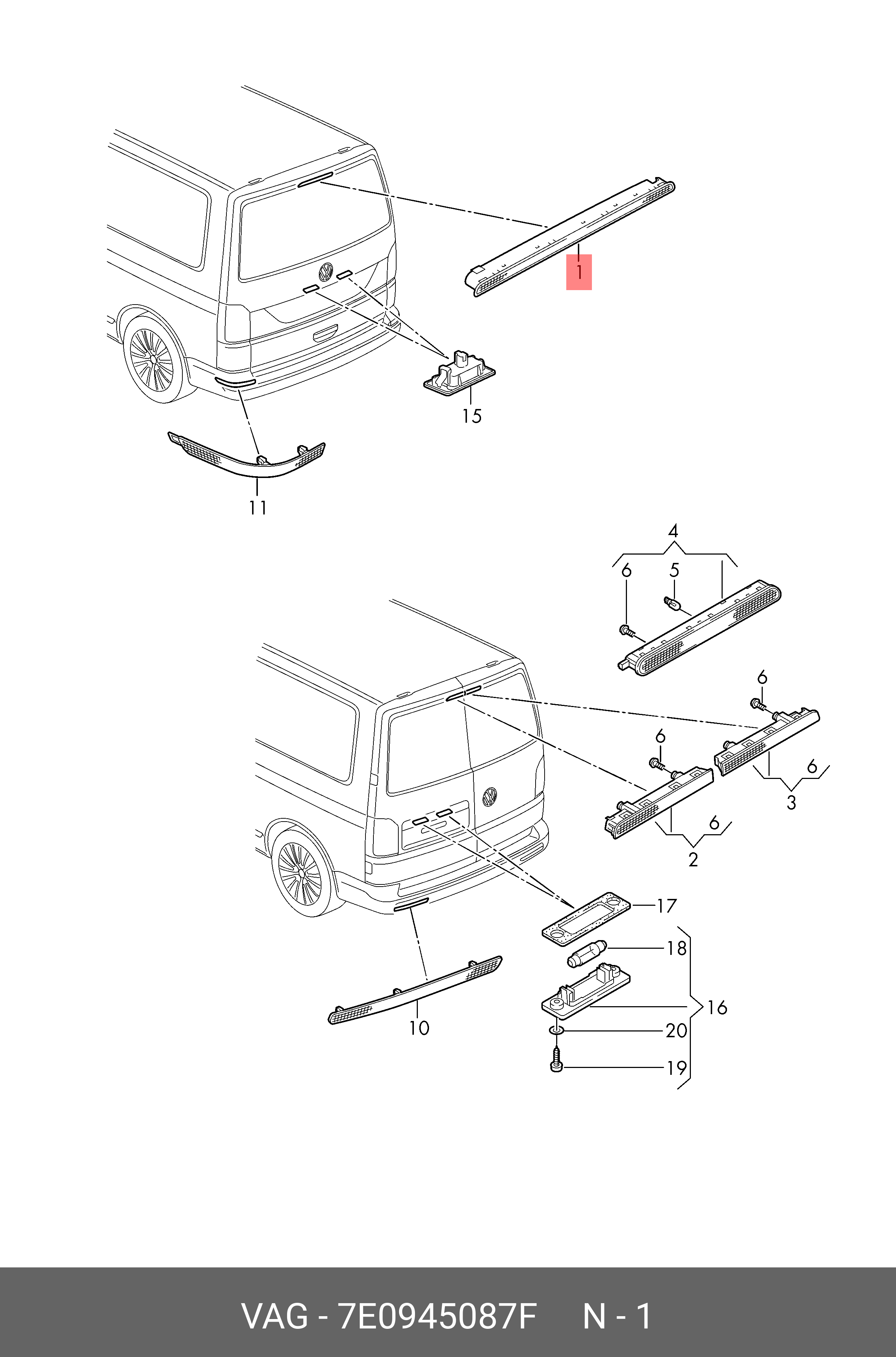 7E0 945 087 F VAG ВЕРХНИЙ СТОП-СИГНАЛ 7E0945087F