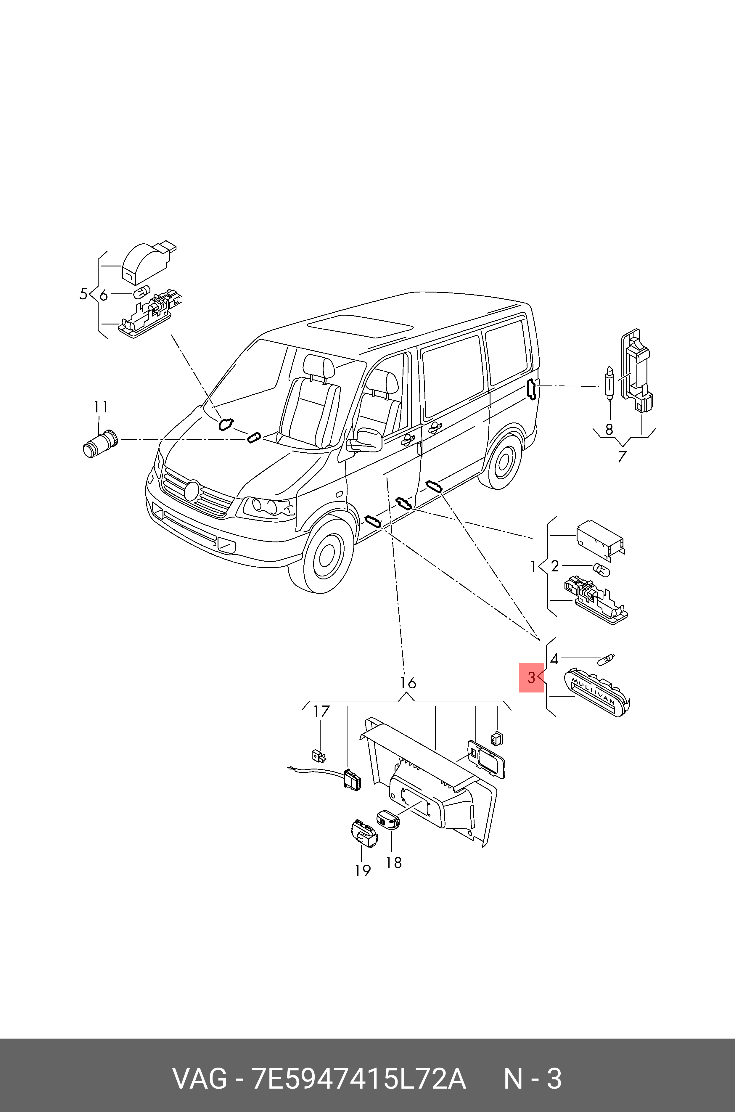 7E5 947 415 L 72A VAG фонарь освещения!\ VW Multivan/Caravelle
