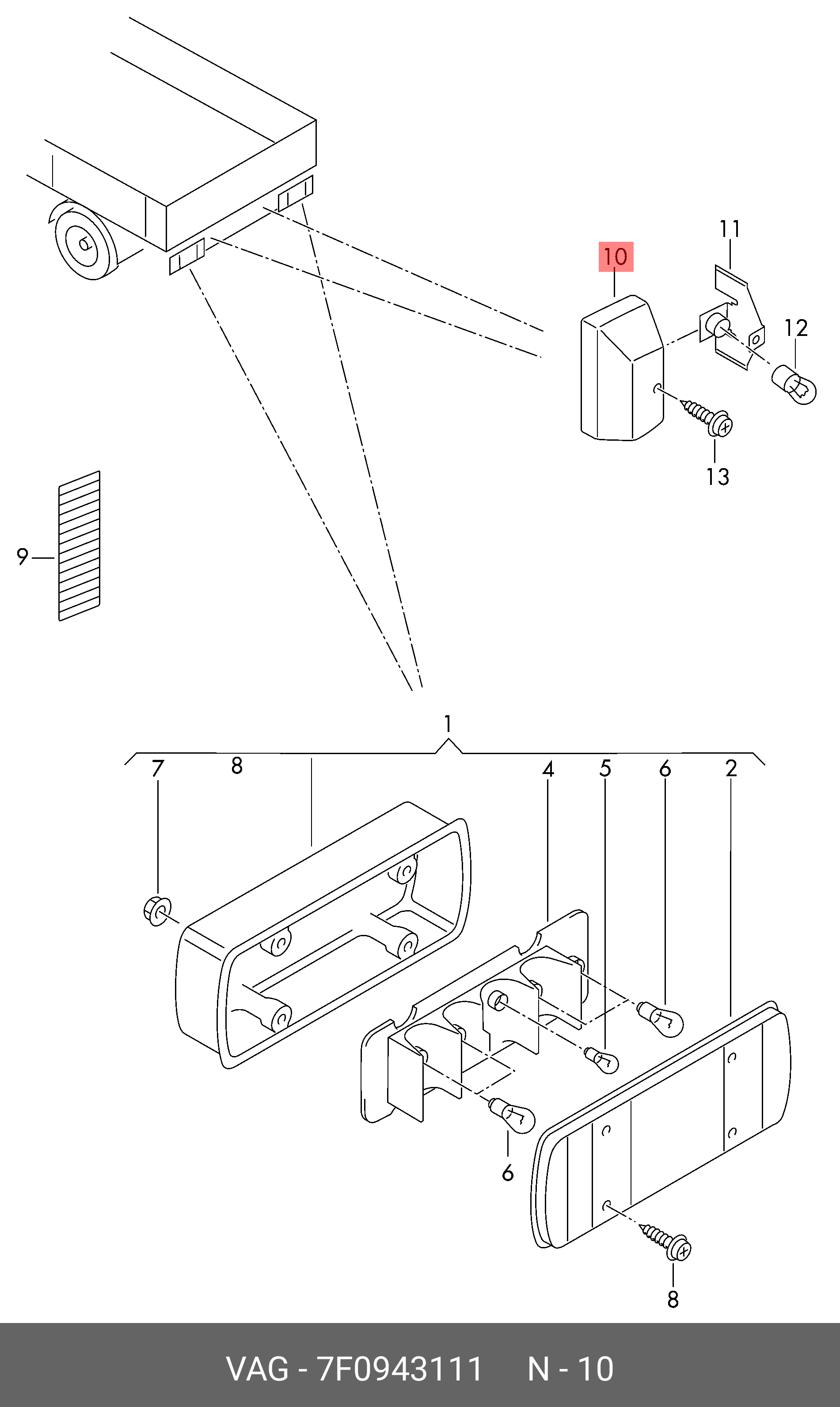 7F0 943 111 VAG Корпус фонаря подсветки номера