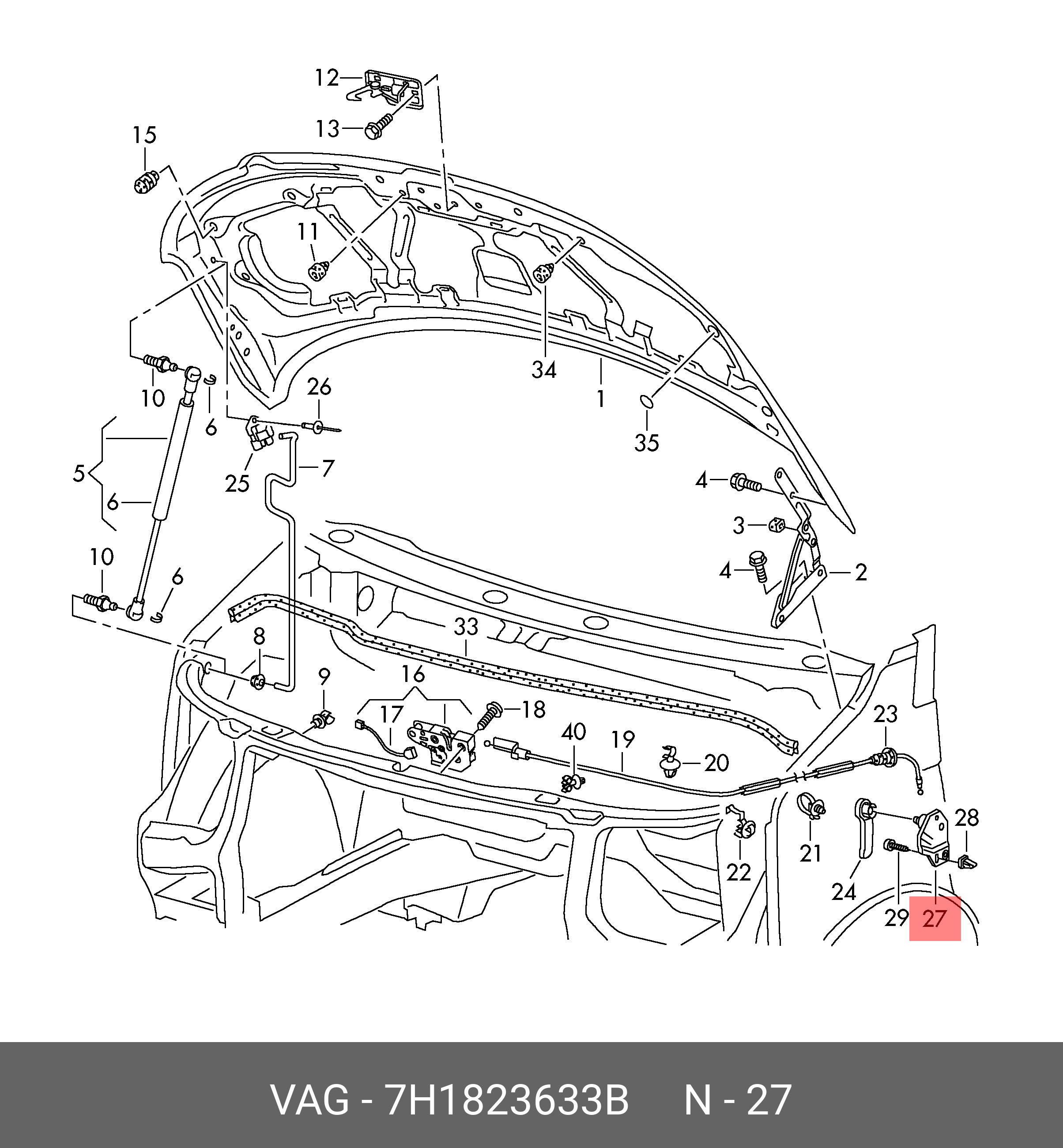 7H1 823 633 B VAG TRANSPORTER T5 (2003>) ОТКРЫВАНИЯ КАПОТА