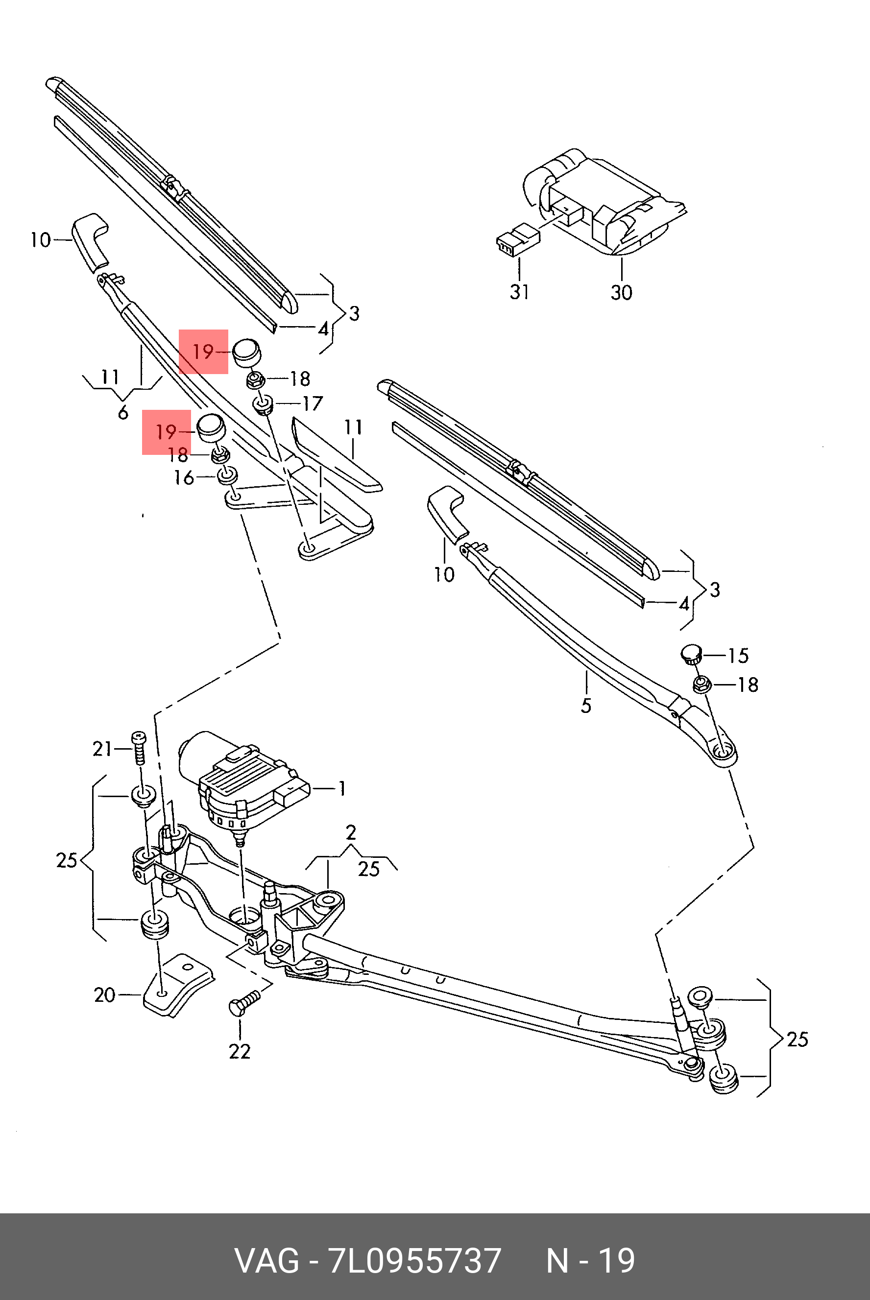 7L0 955 737 VAG колпачок крепления поводка стеклоочистителя!\ VW Touareg 7L6/7LA 02-10