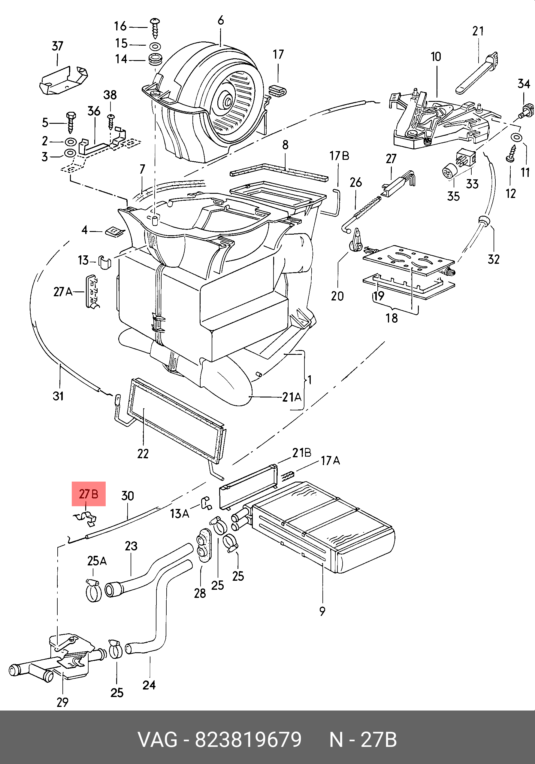 823 819 679 VAG зажим! троса привода печки\ Audi