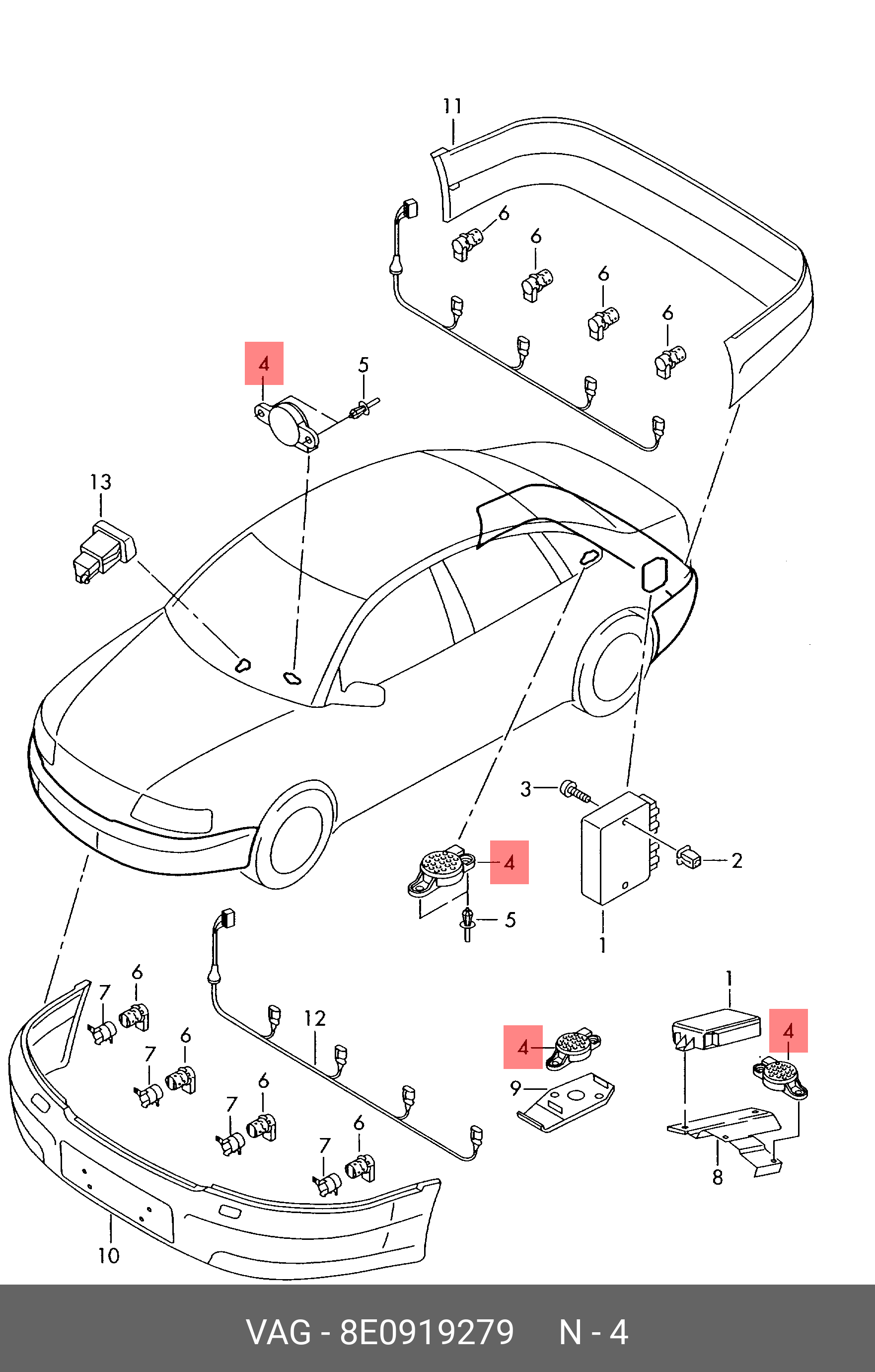 8E0 919 279 VAG датчик парктроника!\ VW A4/B9/RS4 quattro 17>/A6 C8