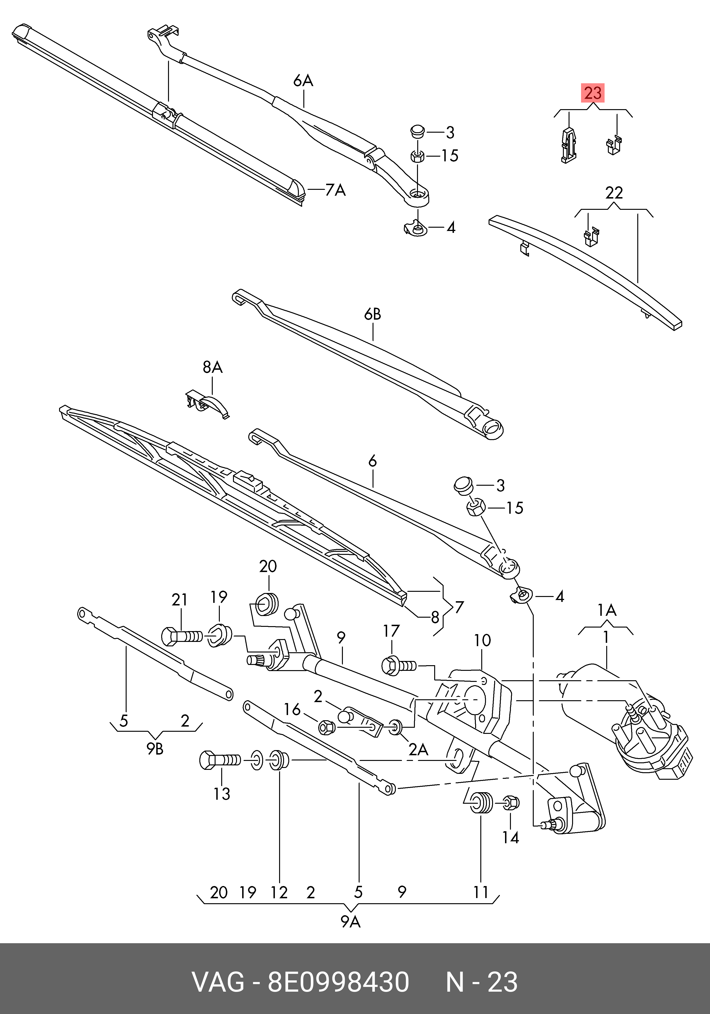 8E0 998 430 VAG кронштейн щётки стеклоочистителя, комплект!\ Audi A4 01-08