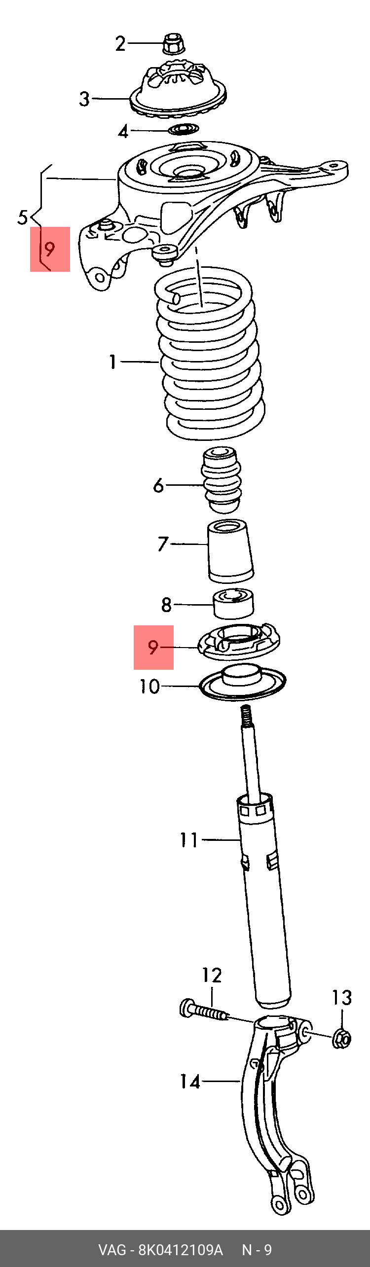 8K0 412 109 A VAG уплотнитель пружины передн.!\ Audi A4 1.8-2.0TFSi/2.0TDi 07>