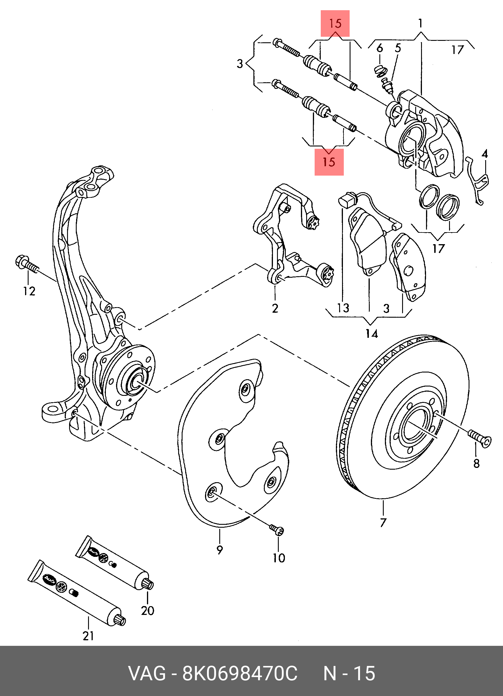 8K0698470C VAG р/к направляющих тормозного суппорта!\ Audi, VW