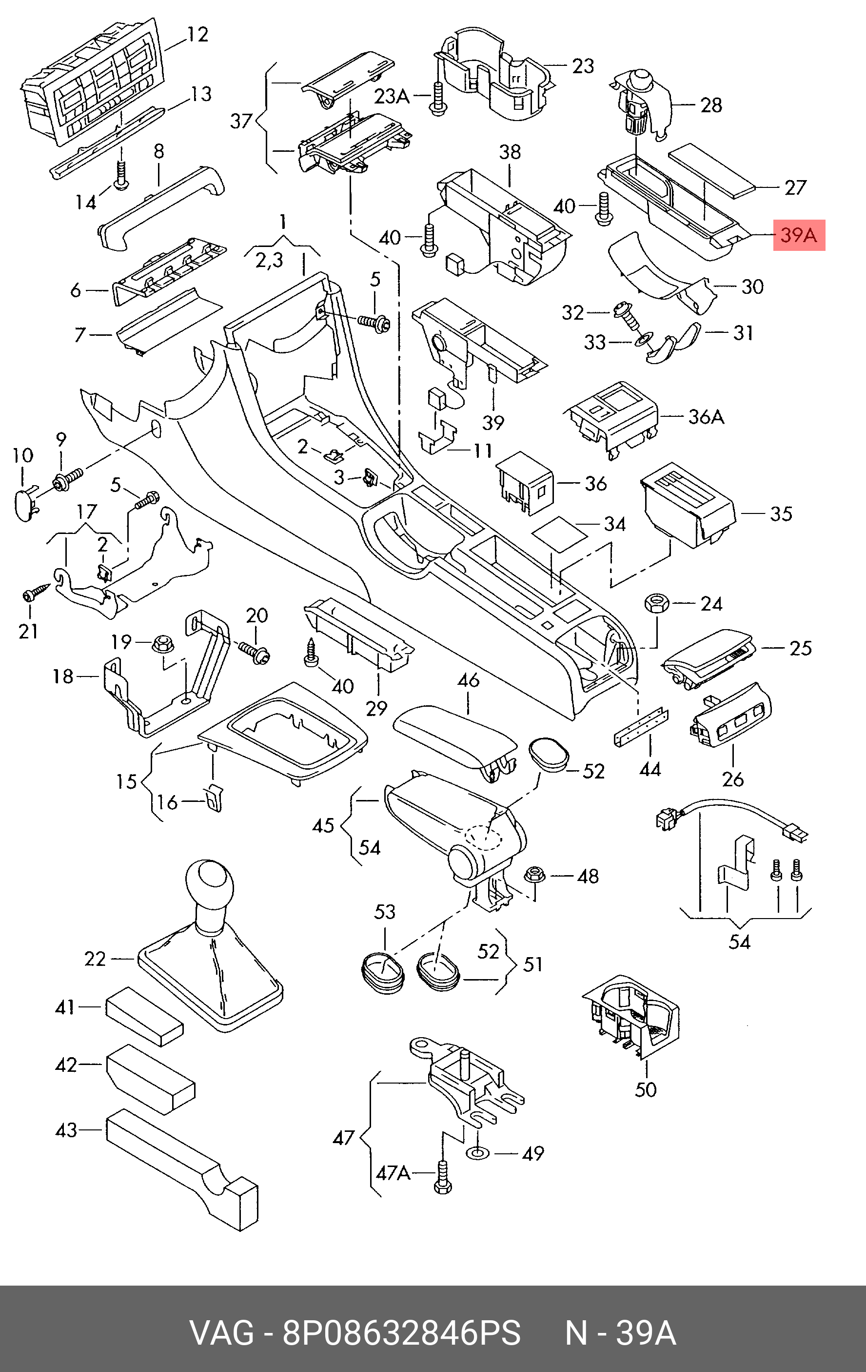 8P0 863 284 6PS VAG 8P08632846PS Вещевое отдел. для цент. конс., soul (черный)