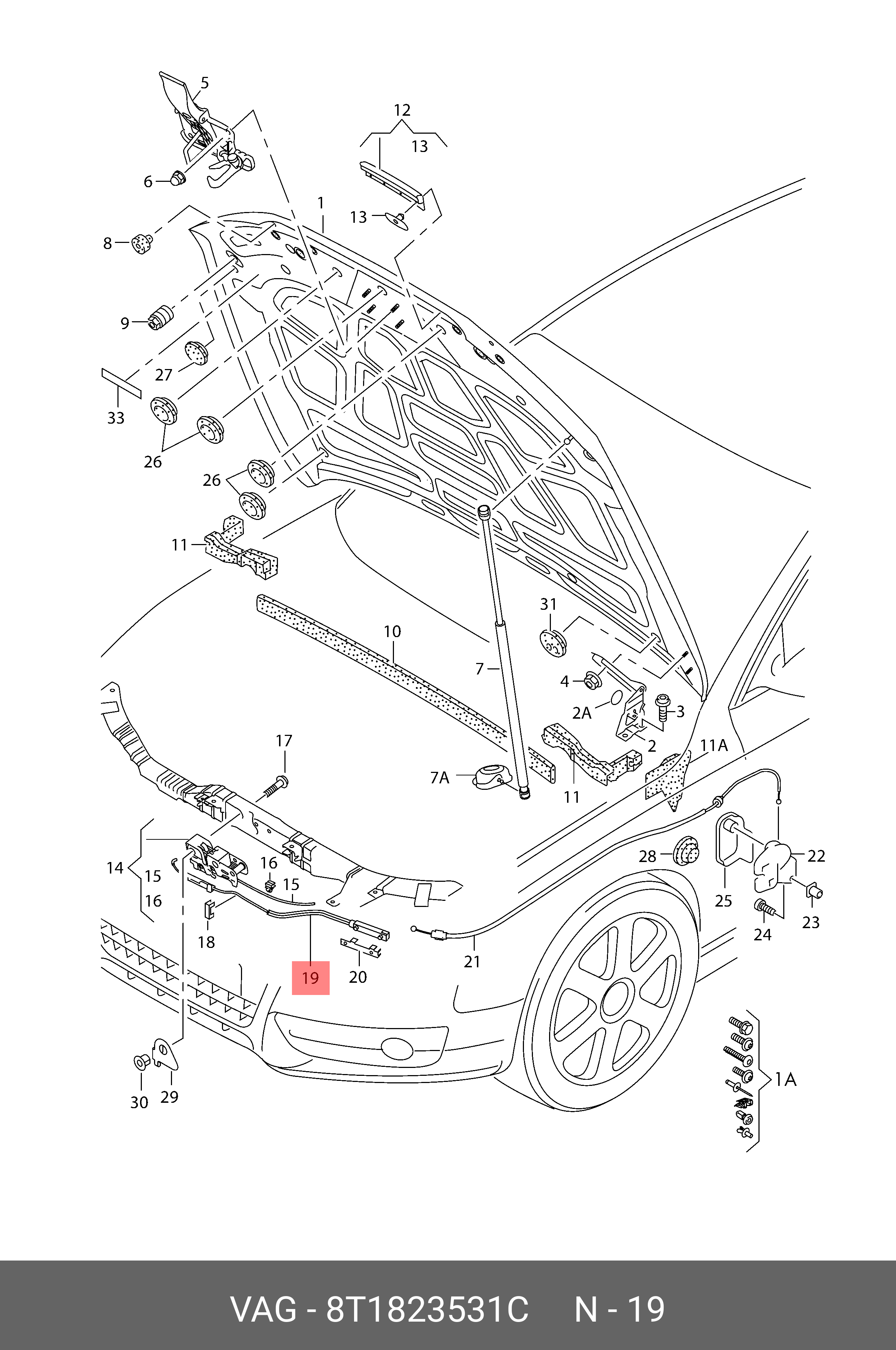 8T1 823 531 C VAG трос замка капота!\ Audi rs4