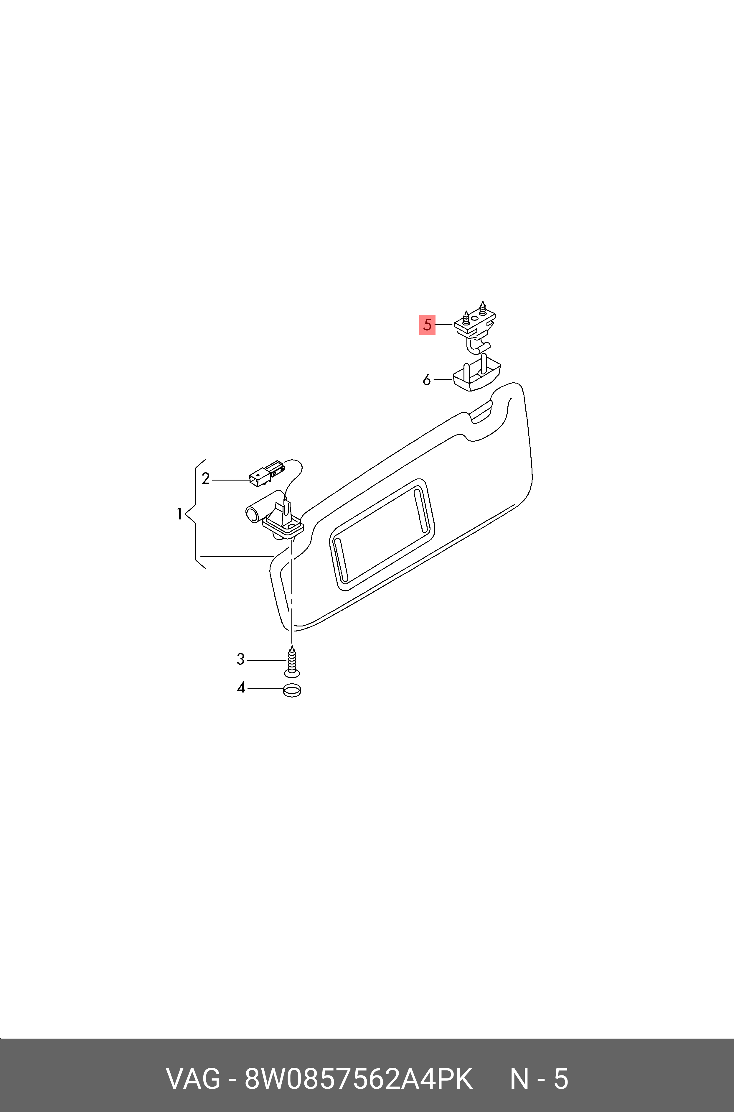 8W0 857 562 A 4PK VAG Кронштейн AUDI A3 козырька солнцезащитного OE