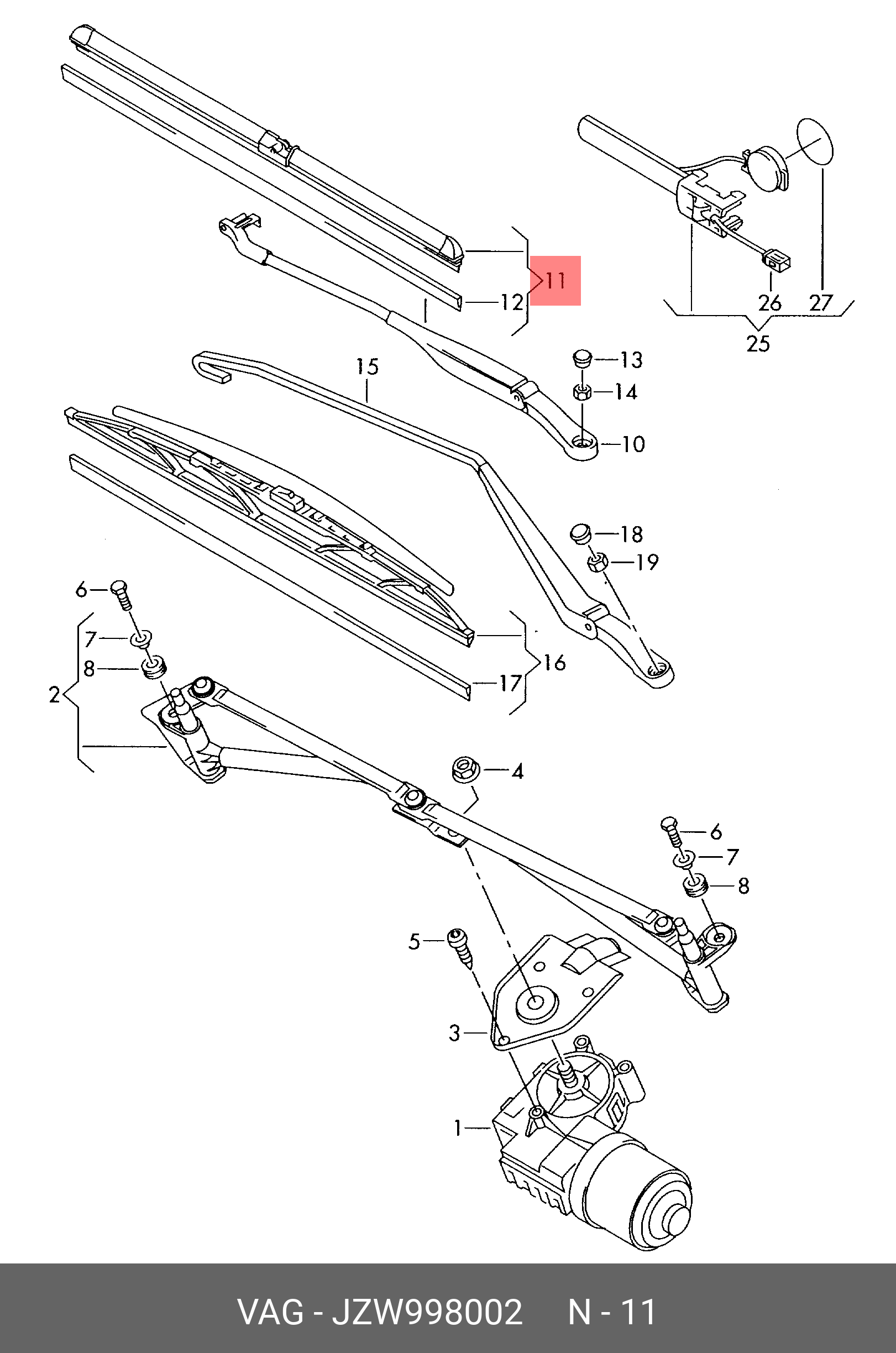 JZW 998 002 VAG Щетка стеклоочистителя VW Polo эконом комплект OE