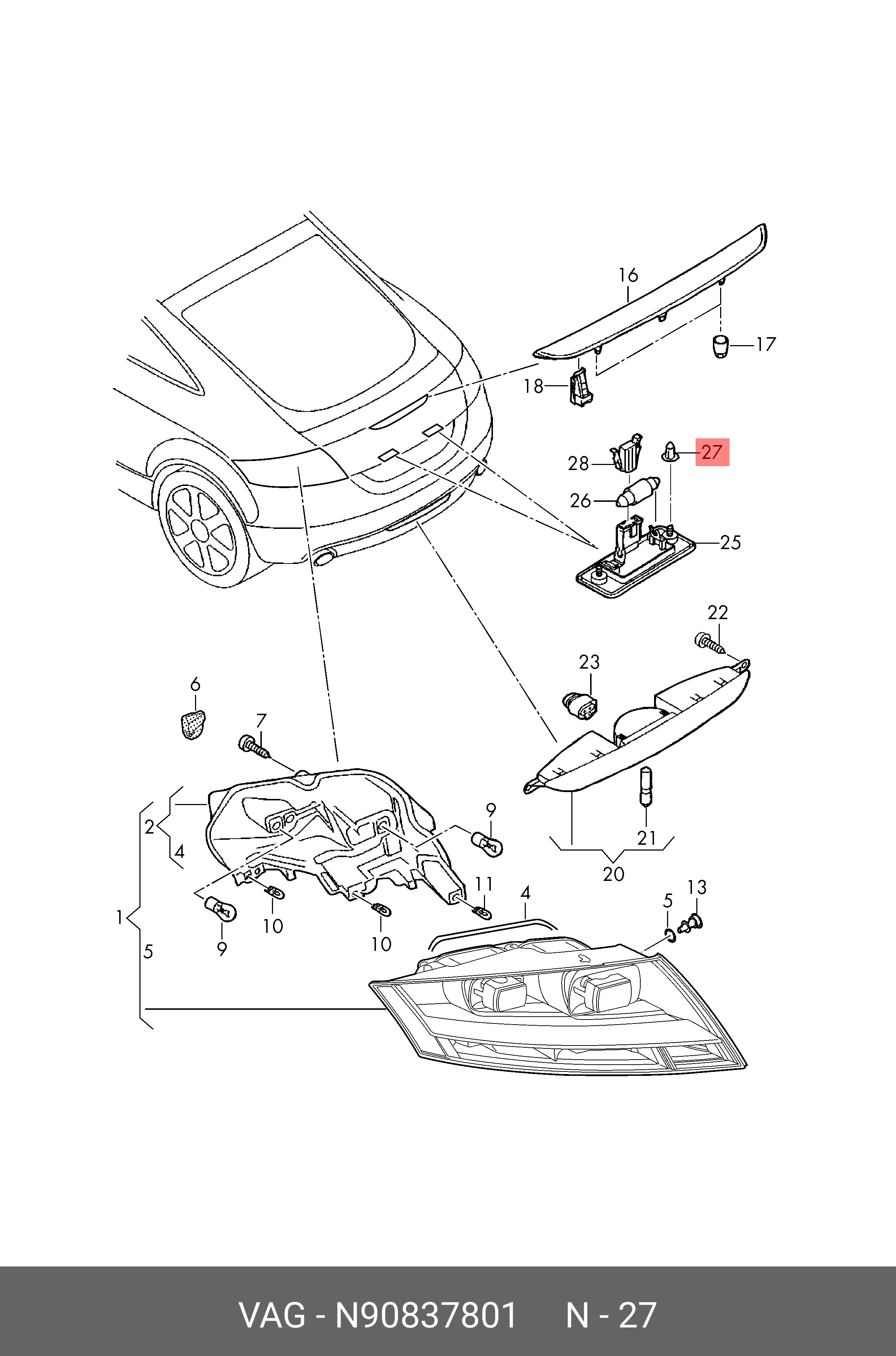 N 908 378 01 VAG Клипса AUDI SKODA распорная OE