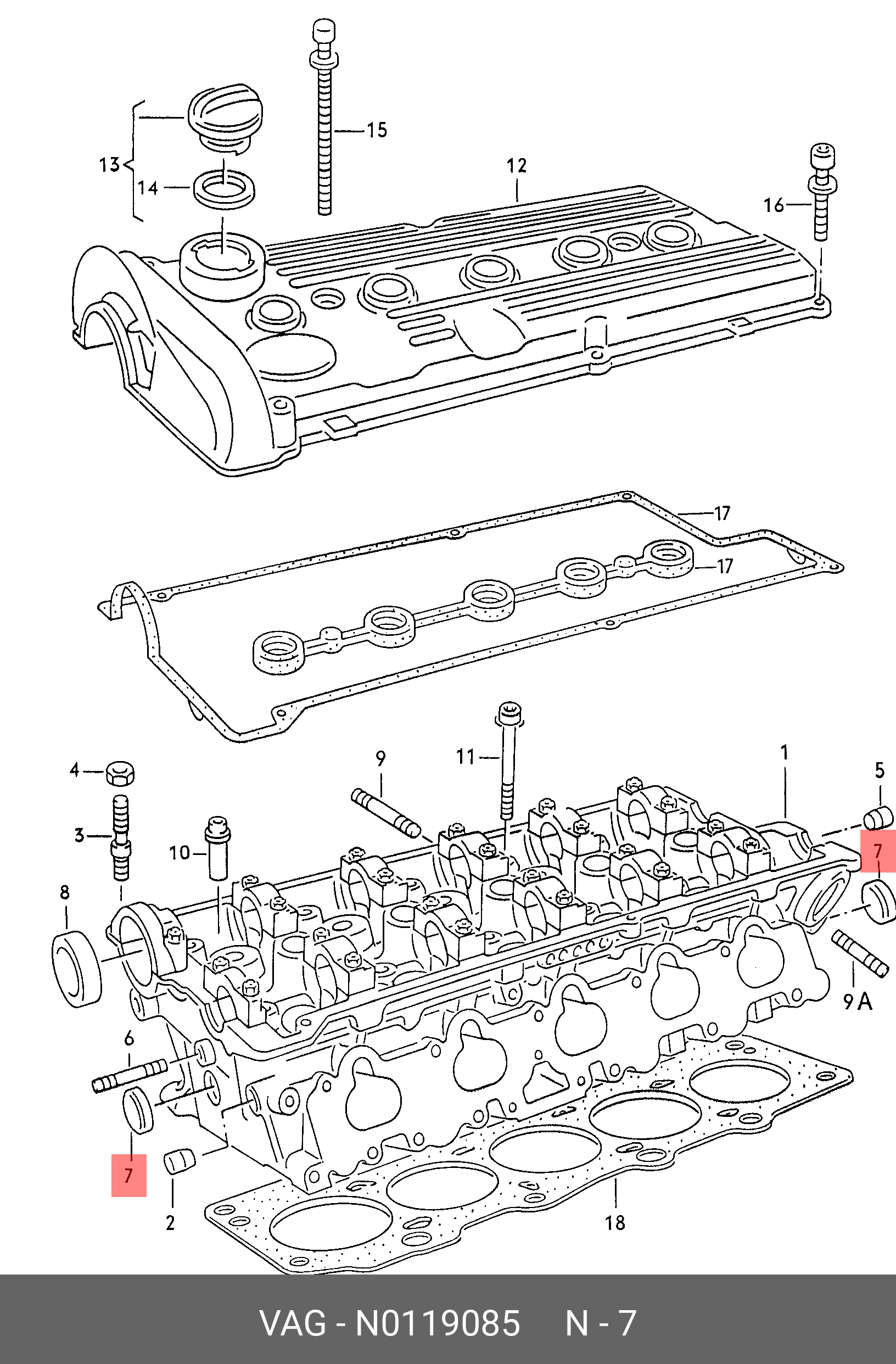N 011 908 5 VAG Заглушка AUDI A4,A6,A8 отверстия в головке блока цилиндров OE