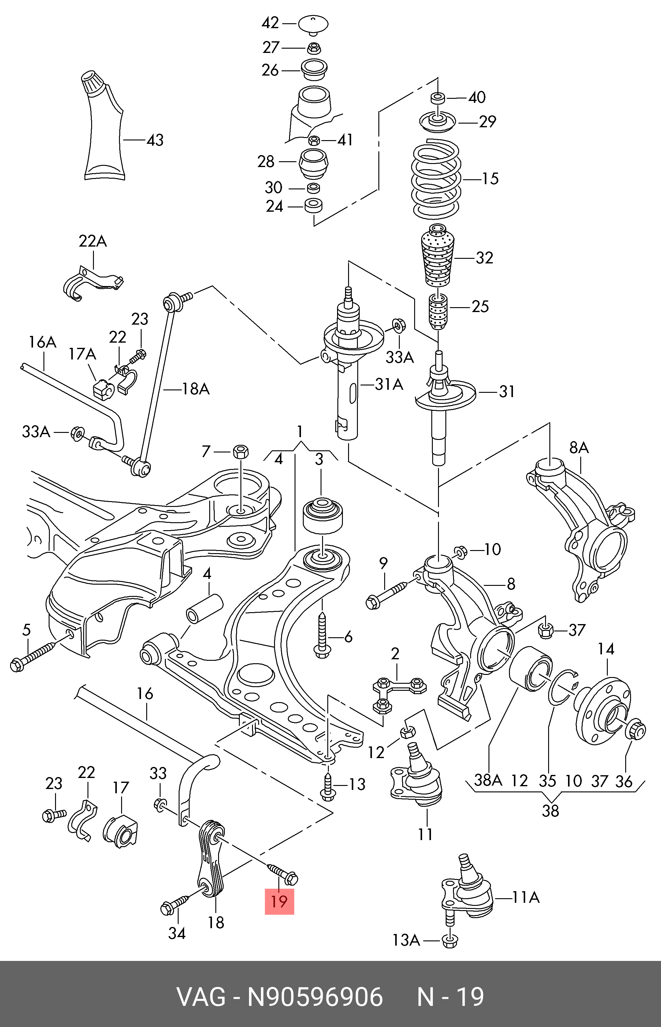 N 905 969 06 VAG Болт М10х55 VW AUDI SEAT SKODA самоконтрящийся OE