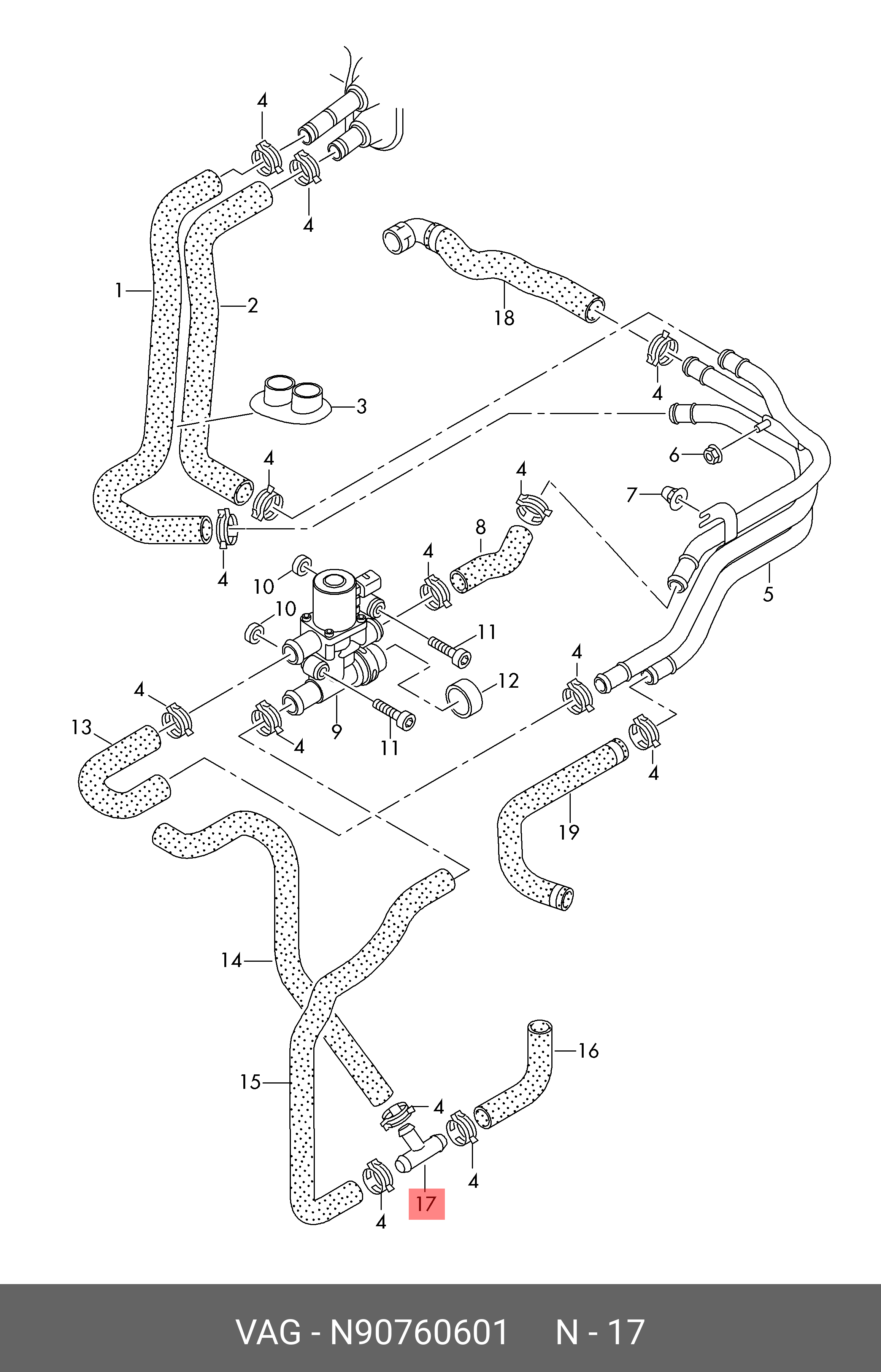 | Наименование | Тройник системы охлаждения N90760601 VAG |