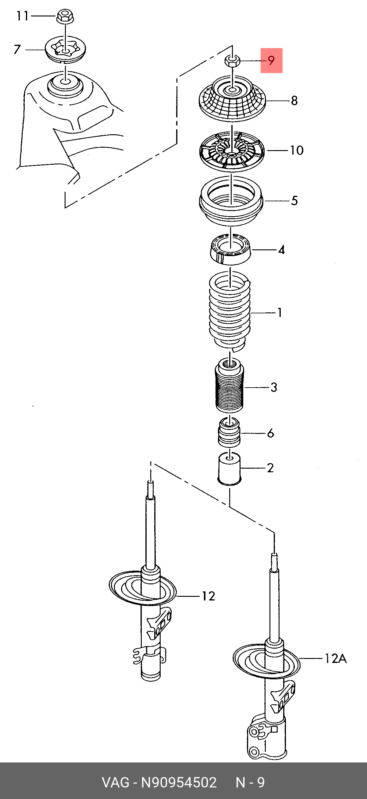 N 909 545 02 VAG VW POLO (HB) (2009>)/TRANSPORTER T5 (2003>) Гайка М14x1,5 шестигранная