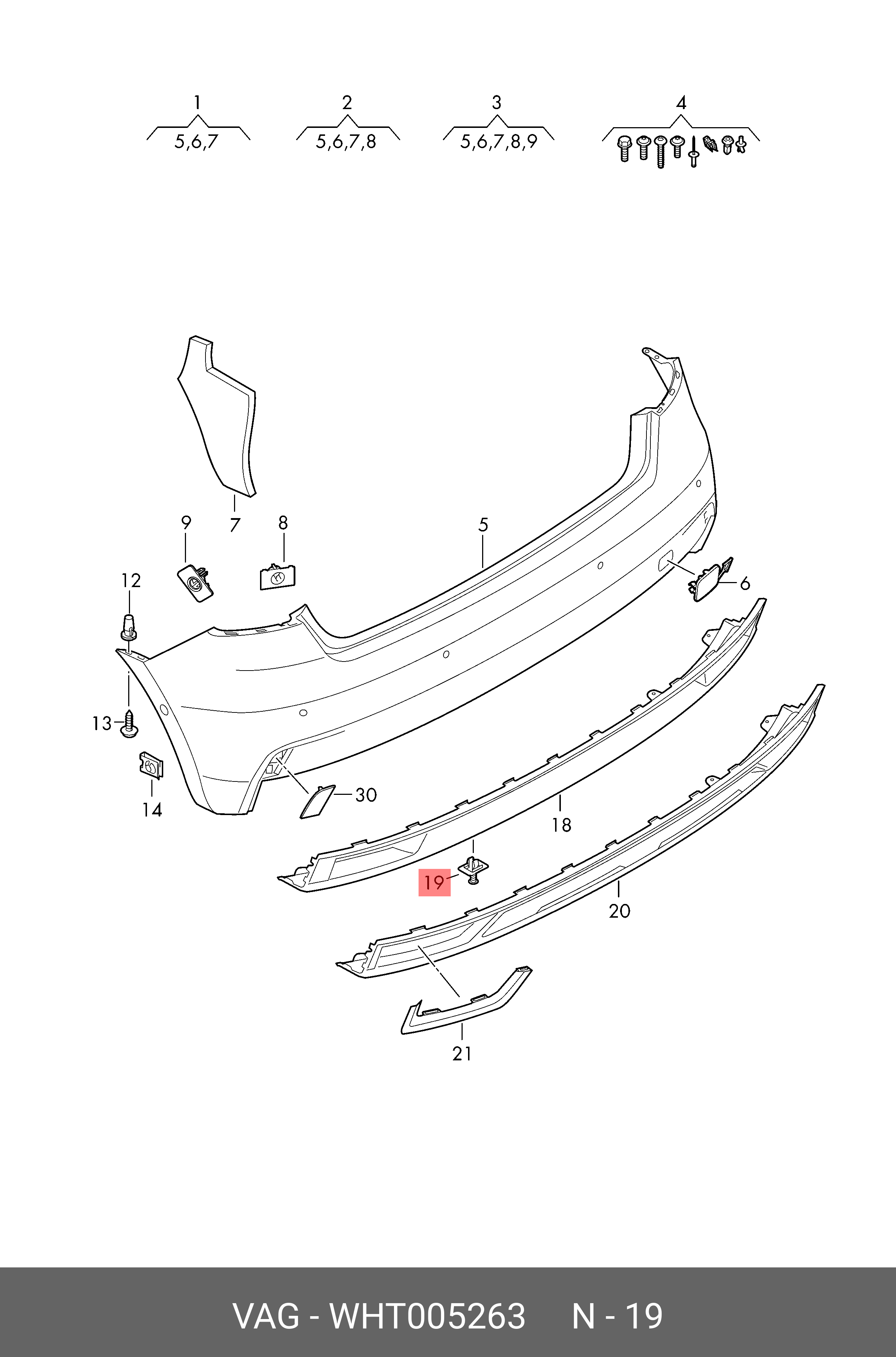WHT 005 263 VAG Клипса VW AUDI SEAT SKODA OE